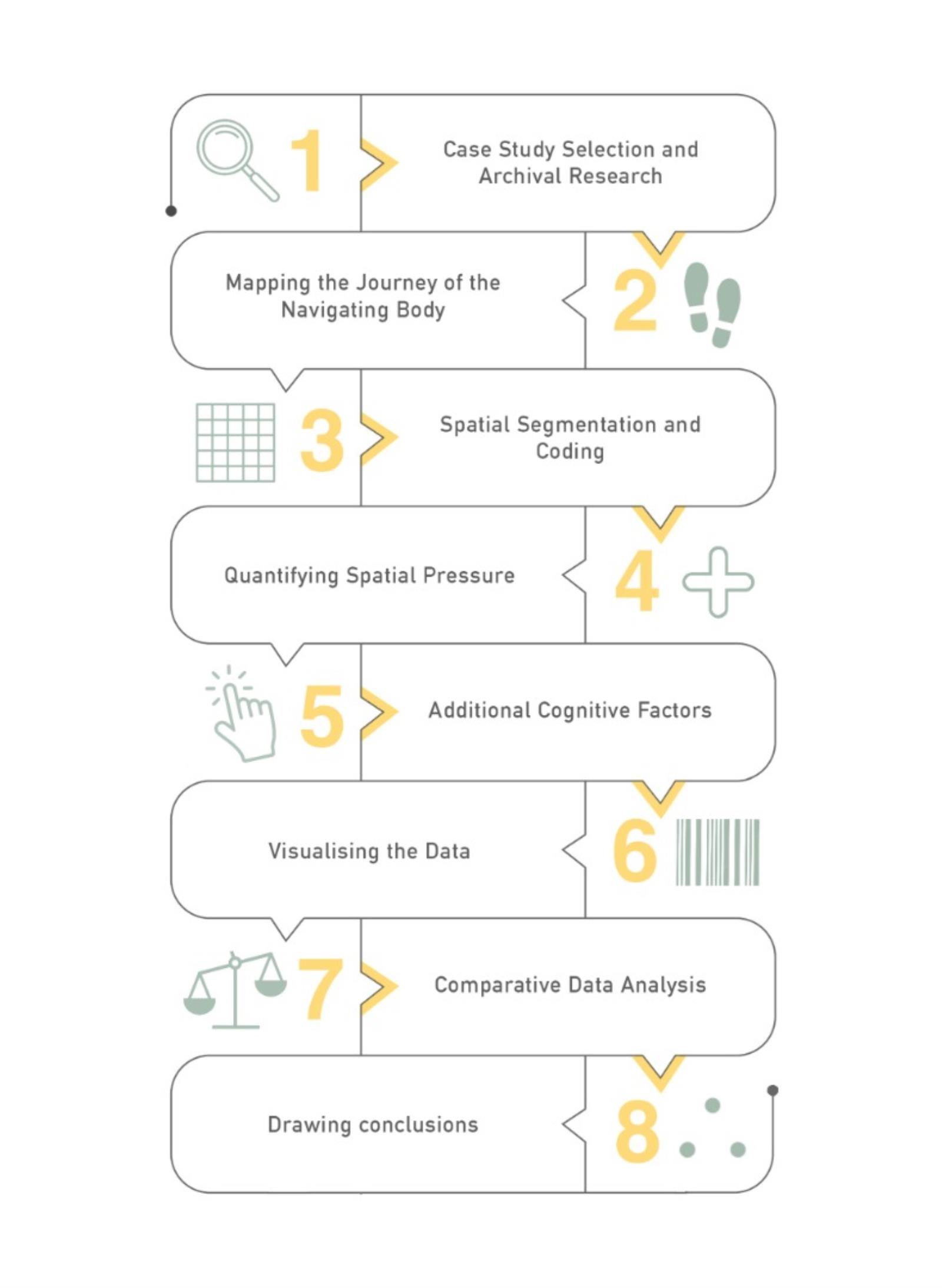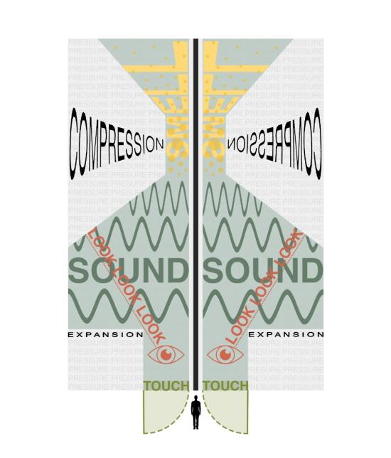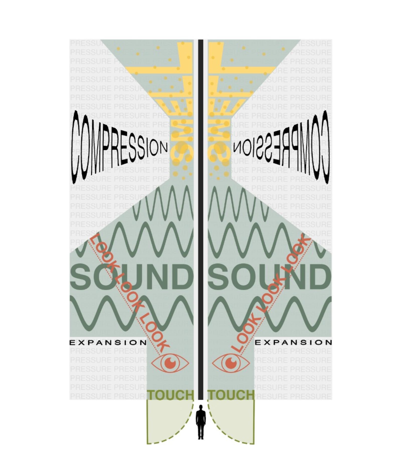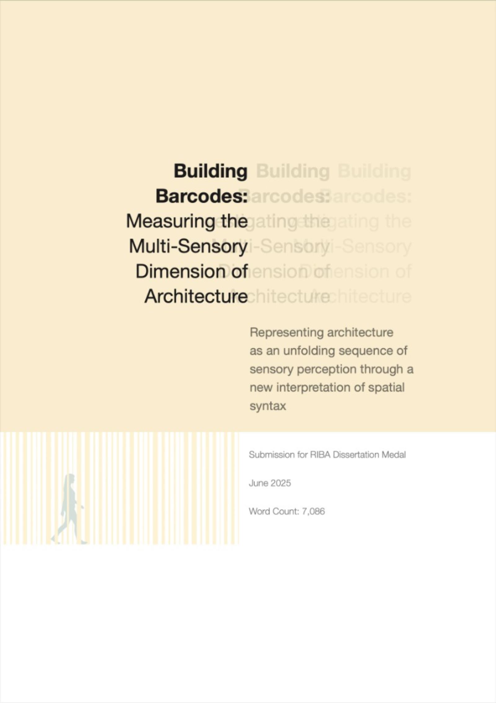 This project challenges the dominance of vision in architectural design by proposing a new method of representation that reintroduces the sensory and embodied dimensions of space. Traditional tools—such as orthographic drawing and static photography—reinforce an ocularcentric bias in architecture, reducing space to fixed visual form. In response, this project introduces ‘building barcodes’: unfolding sequences of bars that visualise spatial pressure over time, mapping the sensory journey of a navigating body.