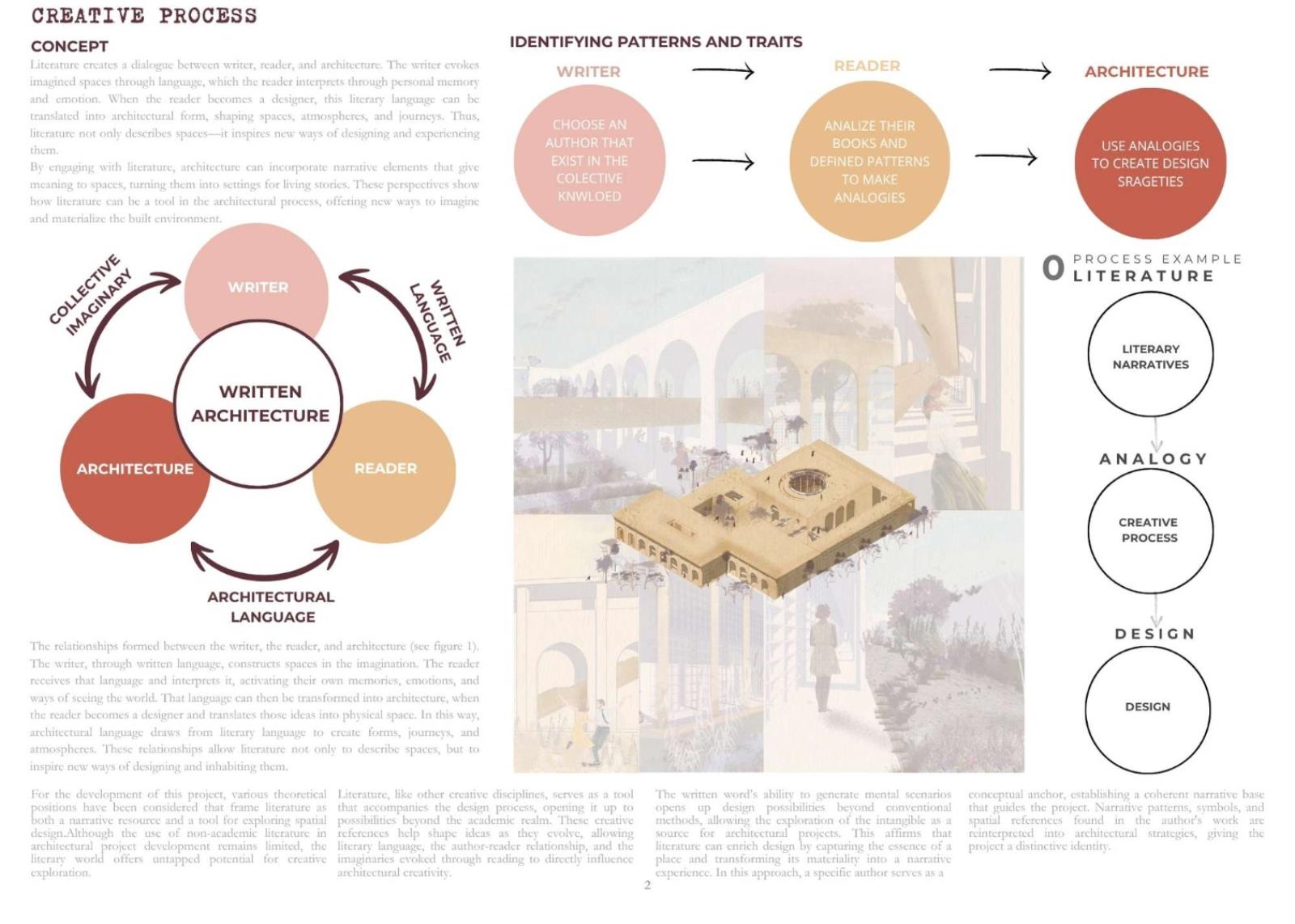 Architecture often overlooks interdisciplinary approaches, relying heavily on technical and formal references. This limits the creative potential of design by excluding tools like literature that can enrich the process. This project addresses this gap by proposing literature as a method for architectural creativity.
