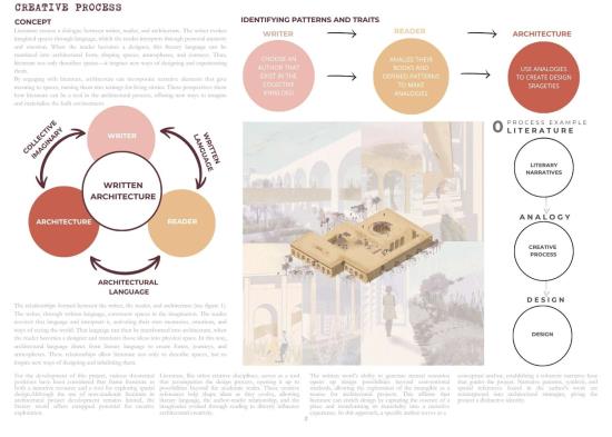 By centering literature in the creative process, the project bridges immaterial narrative and physical space, enhancing emotional and poetic dimensions. Written Architecture becomes a method that deepens architectural innovation and cultural expression, crafting spaces that resonate with memory and imagination.