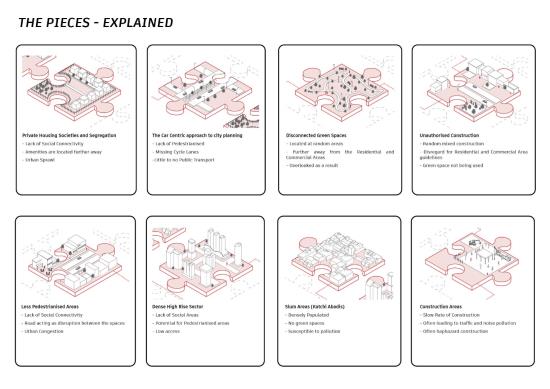 Dynapolis Disassembled: A puzzle of urban fragments Part 1 Dissertation 2025 Adina Usman Coventry University | UK Amid the growing influence of capitalism on contemporary societies, this research offers an incisive analysis of capitalist existence and prevalence in urban forms, examining how it begins to impact multiple human aspects, such as social hierarchy, access to commodities, and population density. It identifies systemic failures embedded in capitalist urban development, revealing how recurring spatial and socio-economic patterns contribute to the long-term deterioration of urban form.Using the 1960 Masterplan of Islamabad by C. A. Doxiadis as a key case study, the work examines how the city's original vision, framed around modernist ideals and structured growth, has diverged over time due to political, economic, and market-driven pressures. Conducted at a time when Islamabad is undergoing a significant transitional phase, the research recognises this moment as a critical opportunity, where reflection and reform are not only urgent but also more achievable. Through this lens, the research explores the broader implications of capitalist urbanism and its role in shaping both present conditions and future trajectories.Combining historical analysis, critical theory, and spatial evaluation, the study not only diagnoses the faults of Islamabad’s urban evolution but also proposes informed interventions. These aim to guide urban development toward more equitable, inclusive, and sustainable futures. Tutor(s) Tulika Gadakari Giovanna Piga