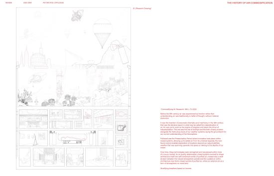 The project critiques the existing ‘Economy of Breathing’. As air quality deteriorates, purified interiors rise in commonality, from pure air rooms in Beijing to airtight luxury bunkers preparing for climate catastrophe. These technofixes create stark divisions as interiors evolve into curated airscapes, while exterior spaces degrade into atmospheric no man’s land.