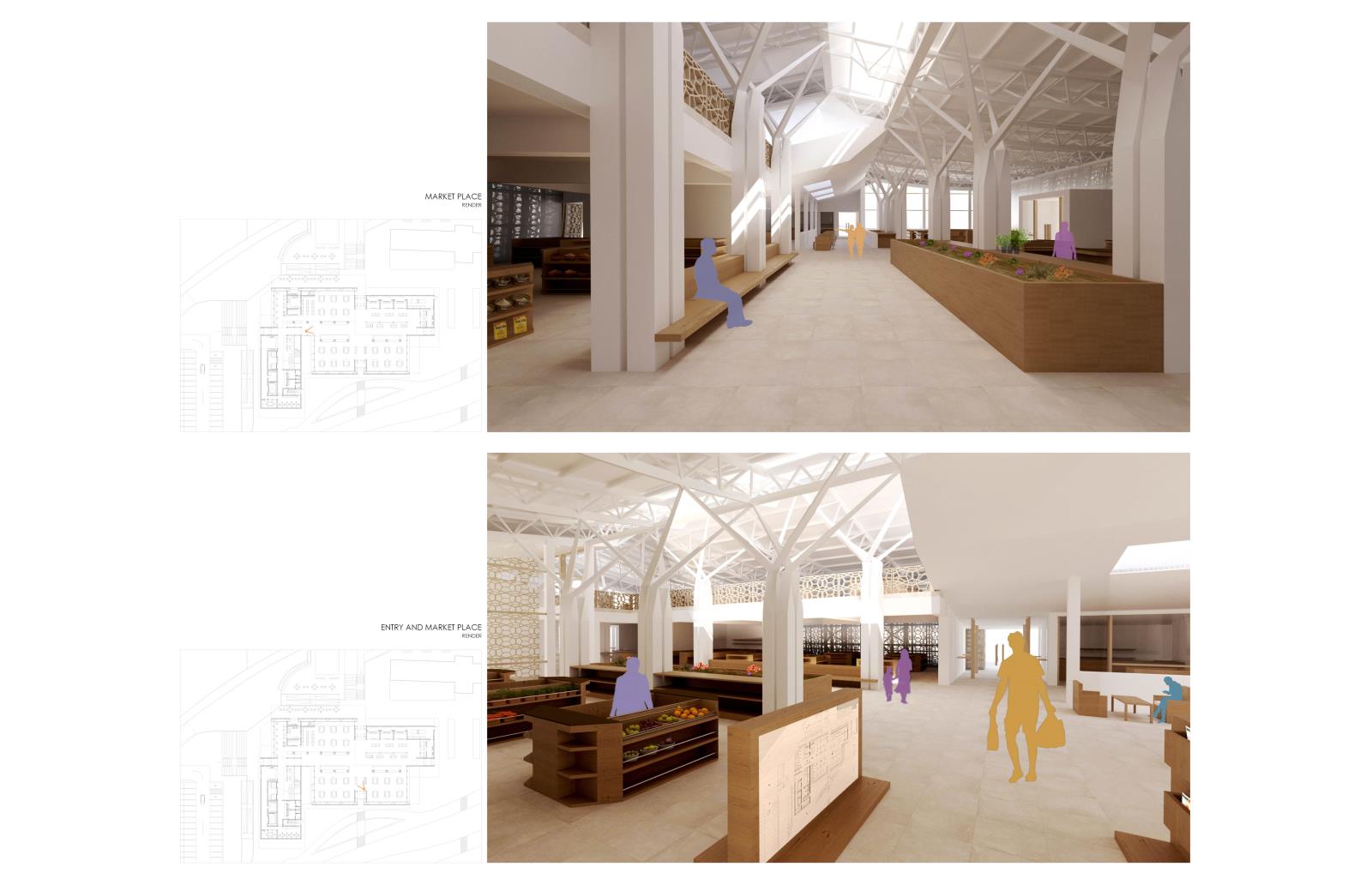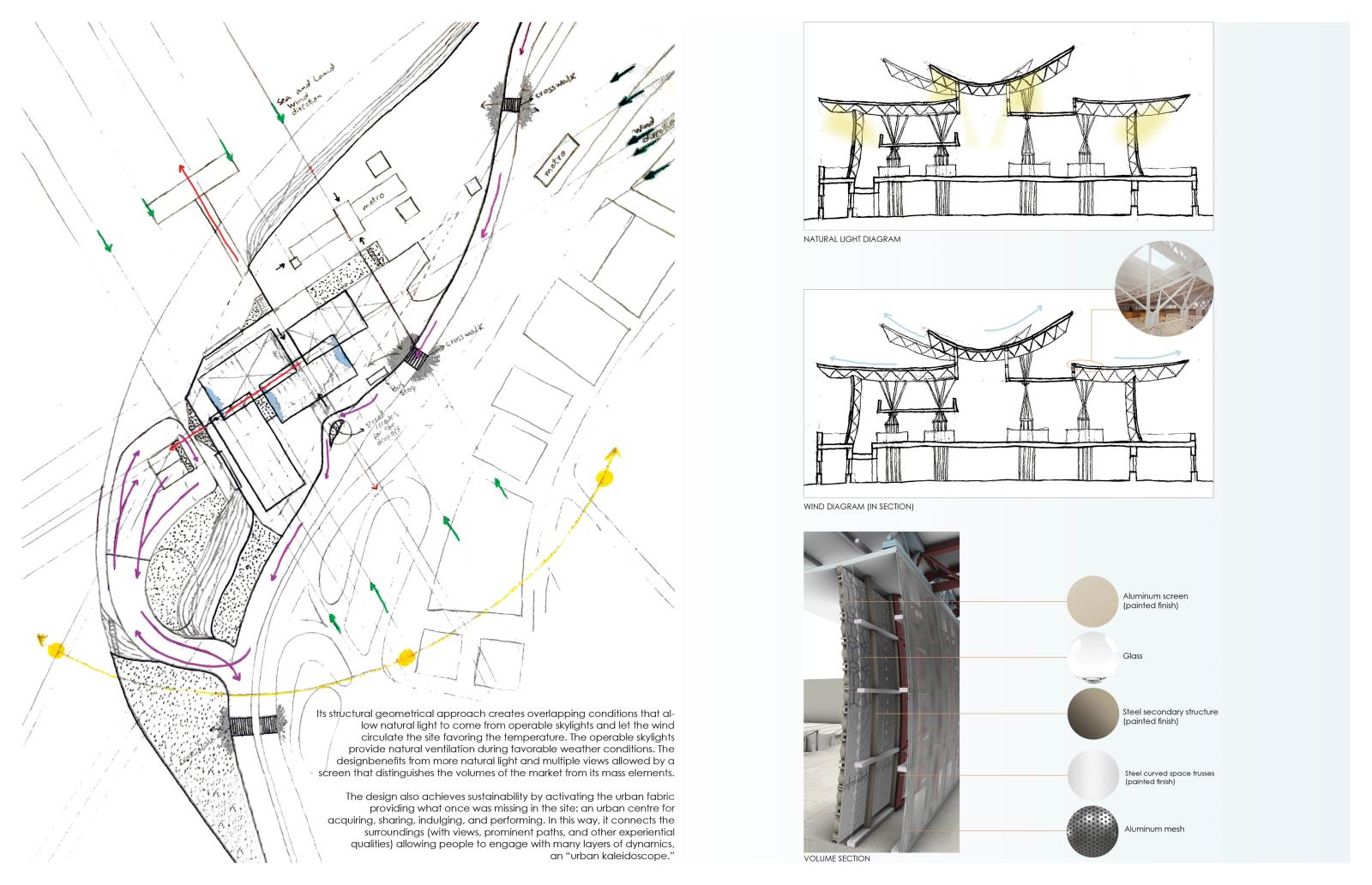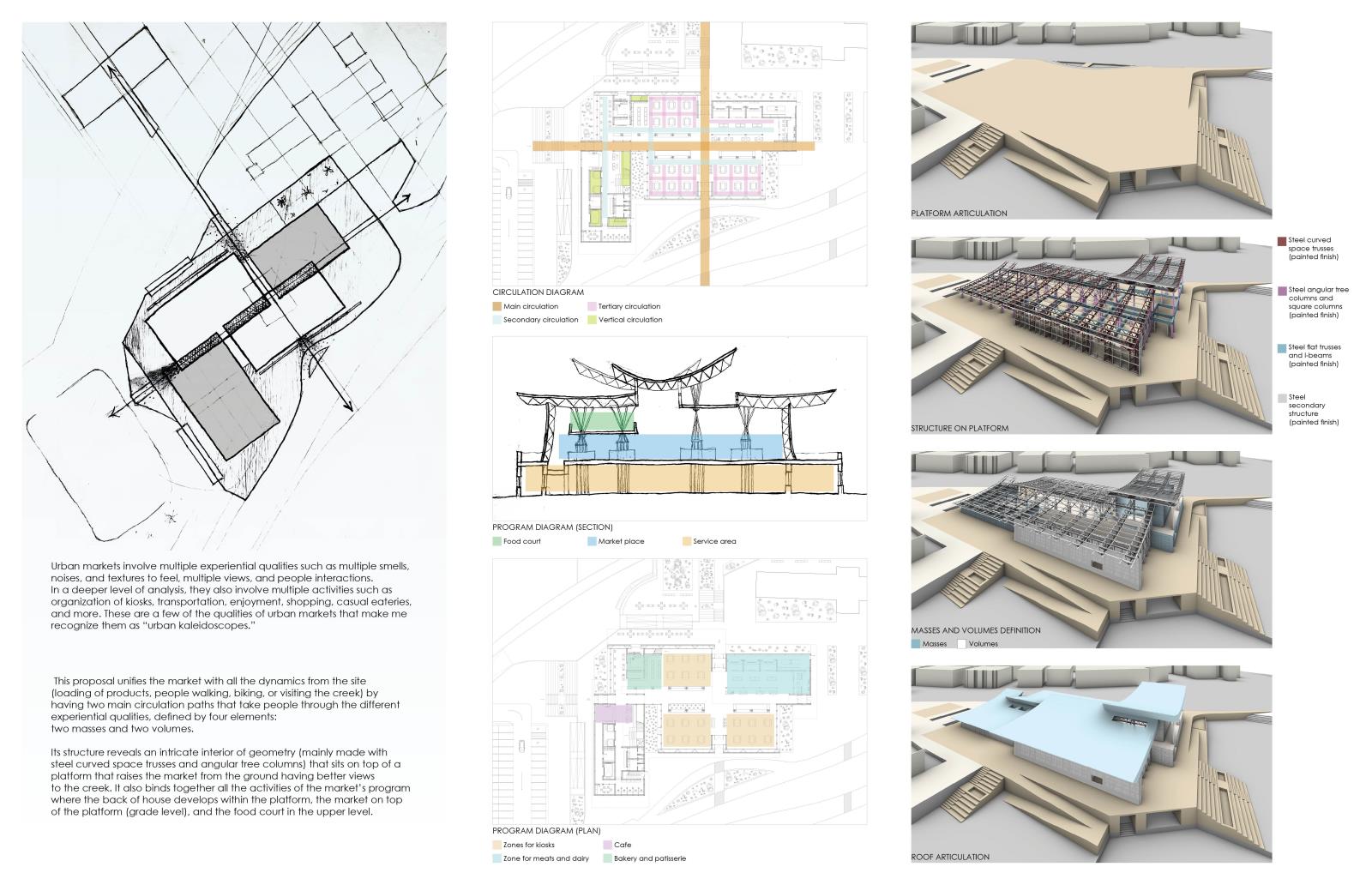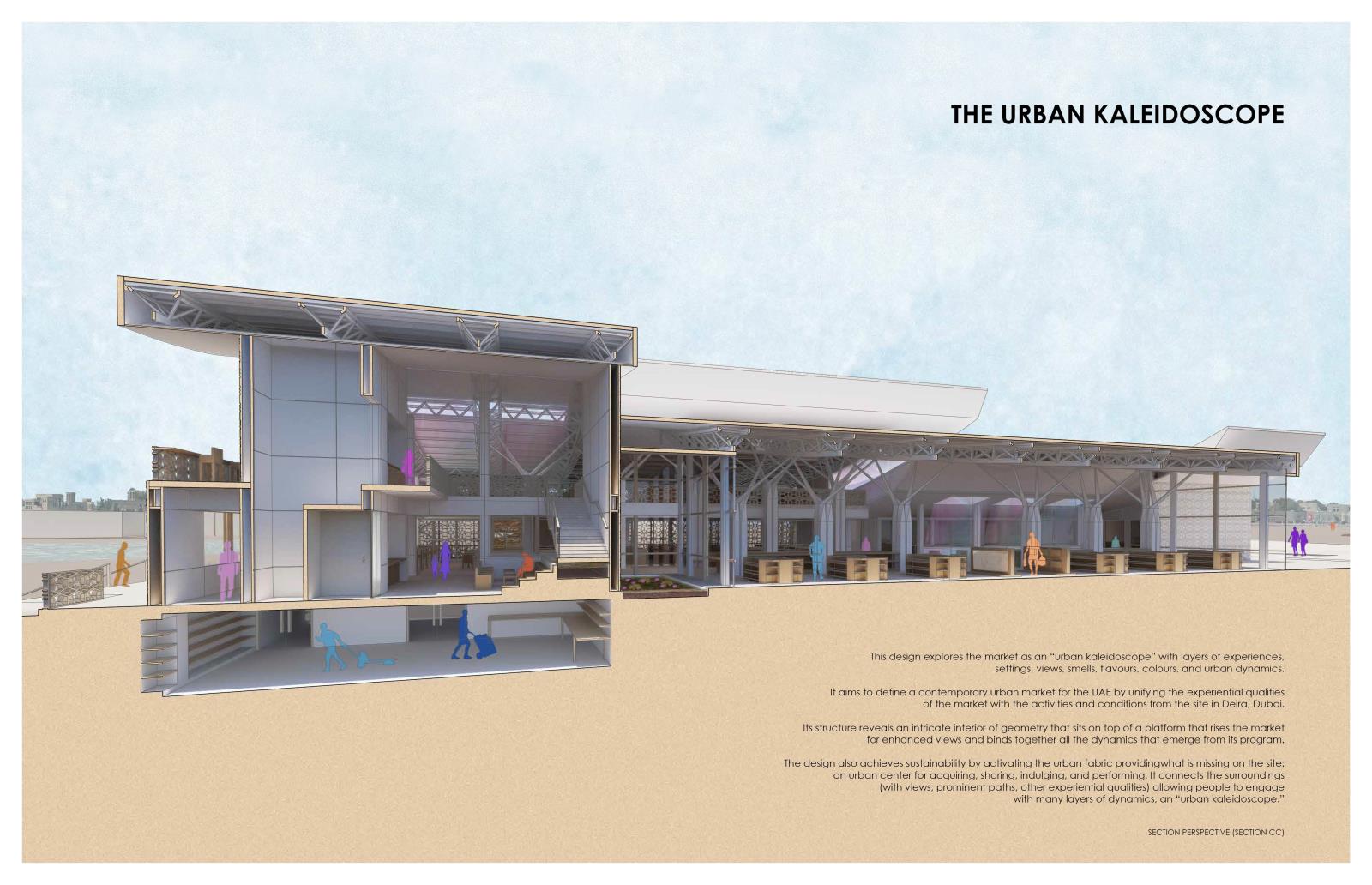 This design explores the market as an “urban kaleidoscope” with layers of experiences, settings, views, smells, flavors, colors, and urban dynamics.