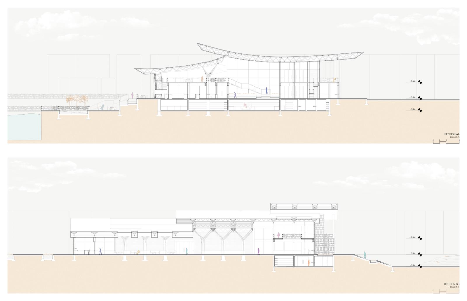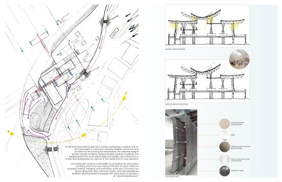 In this sense, it aims to define a contemporary urban market for the UAE by unifying with two prominent paths the experiential qualities of the market with the activities and conditions from the site in Deira, Dubai.