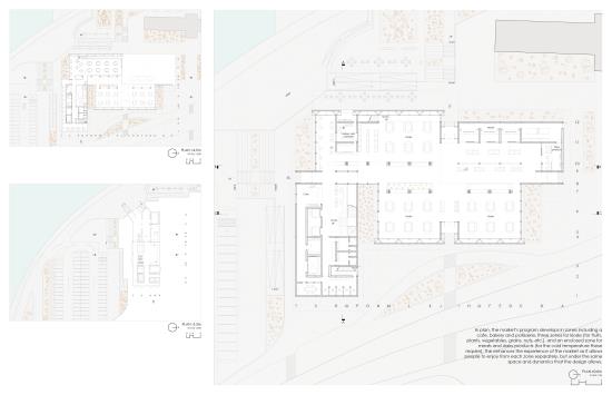 Its geometrical approach creates overlapping conditions that allow natural light to come from operable skylights and let the wind circulate the site favoring the temperature. The operable skylights provide natural ventilation during favorable weather conditions. The design benefits from more natural light and multiple views allowed by a screen that distinguishes the volumes of the market from its mass elements.