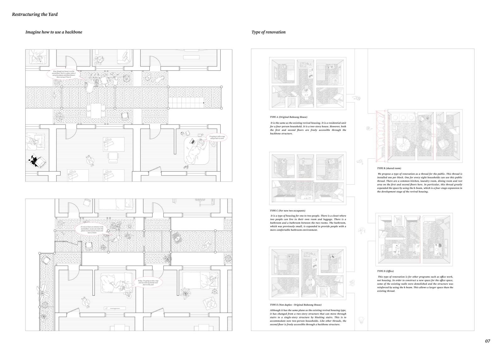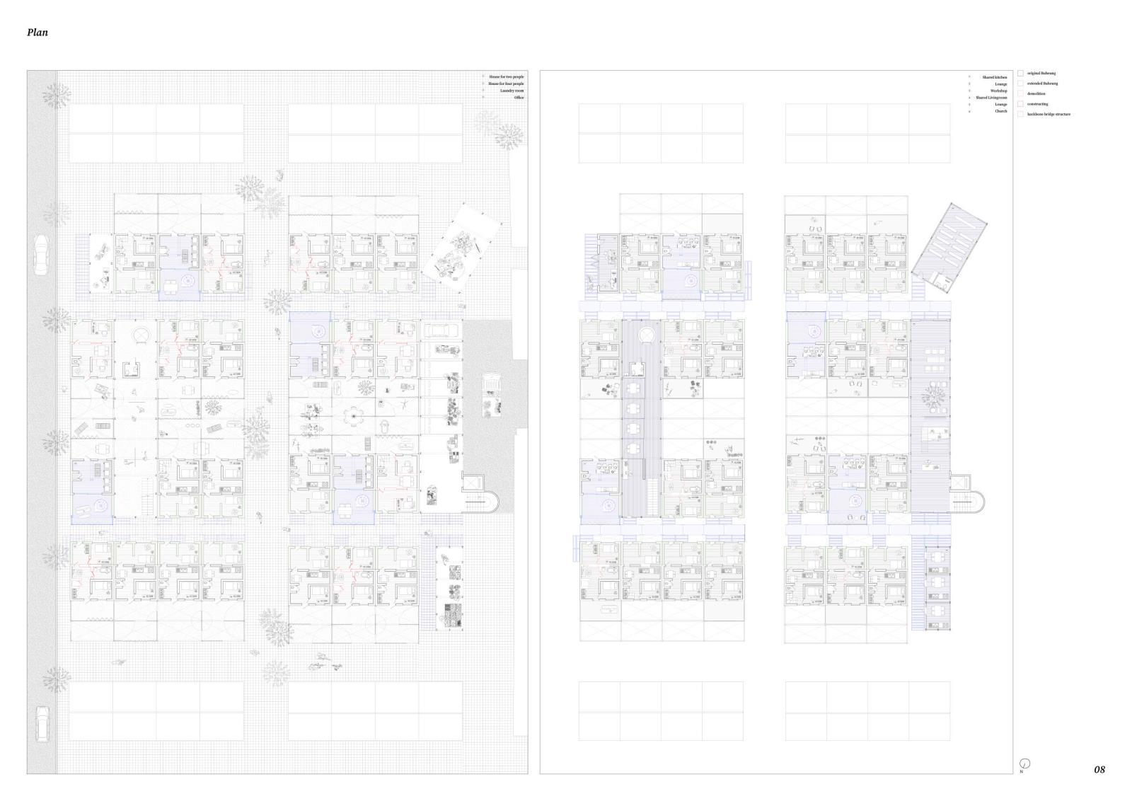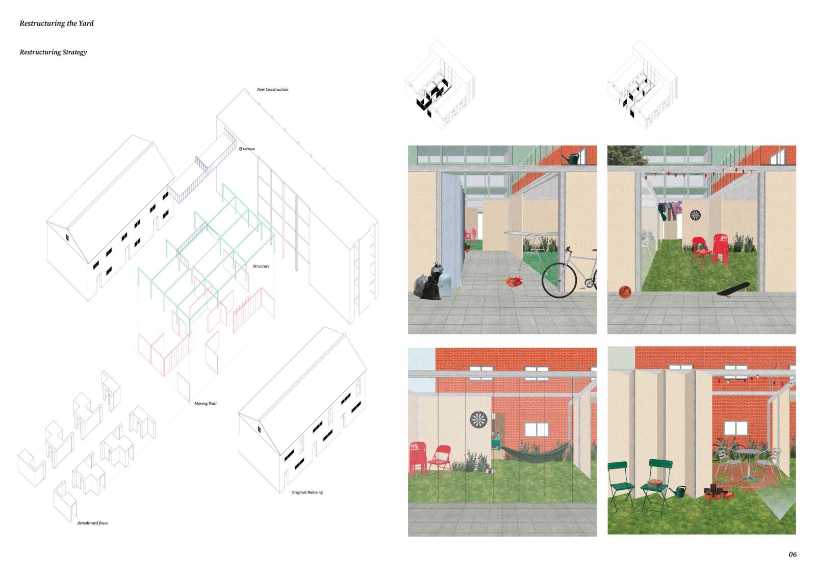 Instead of replacing everything, the proposal continues the story of adaptation. It rejects the uniform, high-rise model driven by capital, and imagines a different future for low-rise neighborhoods shaped over time. With shared infrastructure, flexible grid layouts, and new interpretations of walls and boundaries, the project offers a renewed way of living together—one that values the past, meets present needs, and allows for future change.