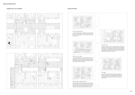 This project proposes a backbone structure and adds a new phase to that ongoing transformation—a step in the same process through which residents once expanded their living spaces. It keeps a 50:50 balance between old and new houses, and between existing and new residents, in order to respect those past changes. Some original homes are preserved, while others are adjusted—walls removed or added—to suit smaller households. Functions that don’t fit into private homes are moved into shared public spaces.