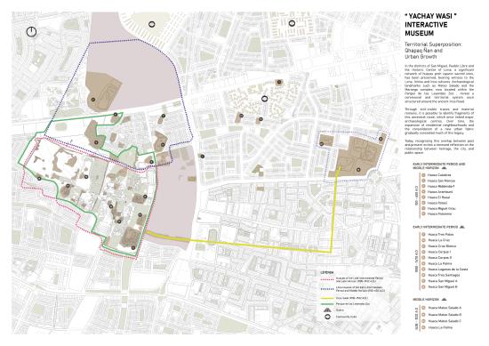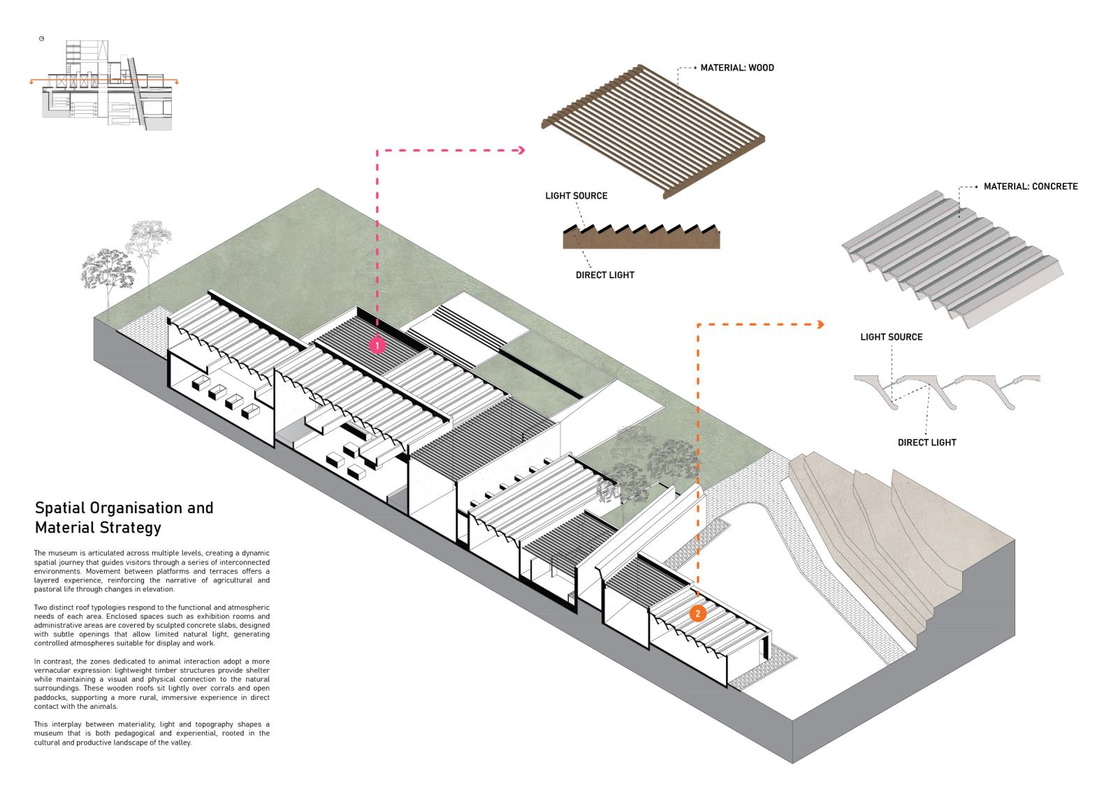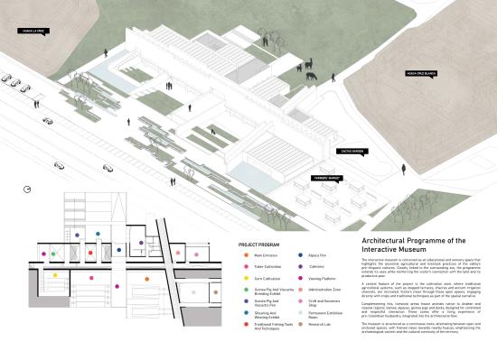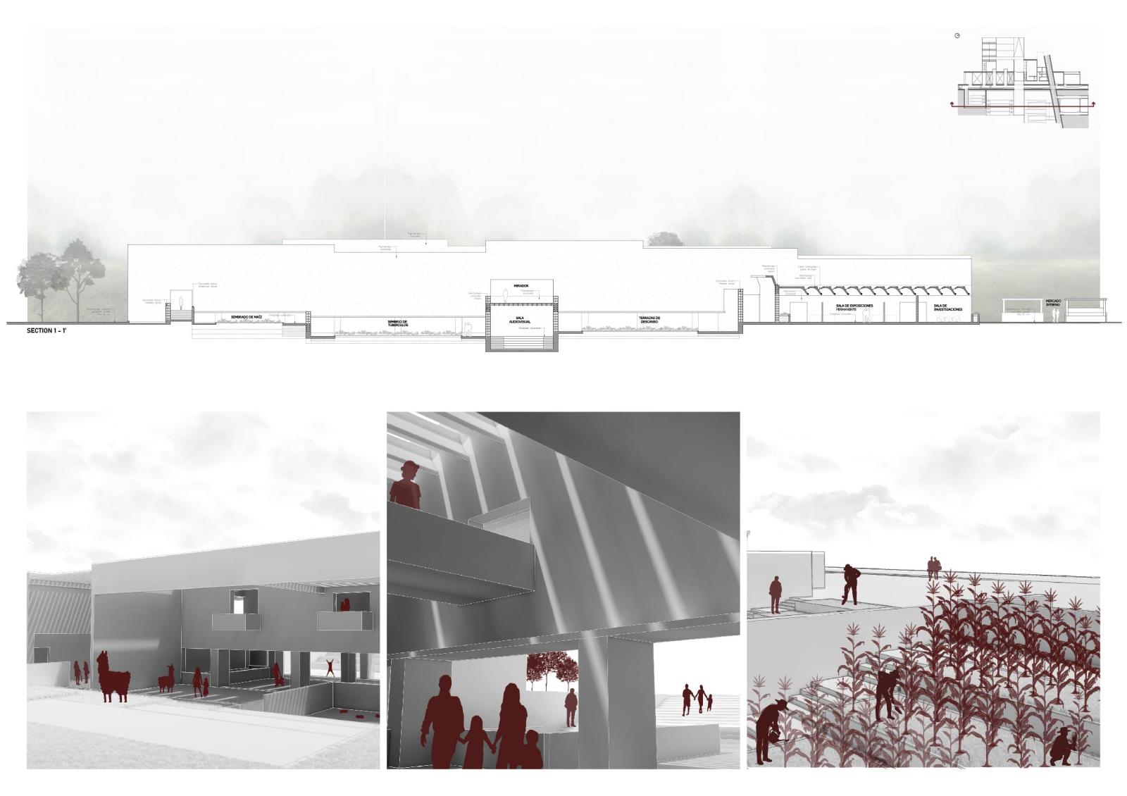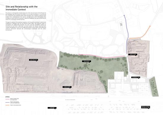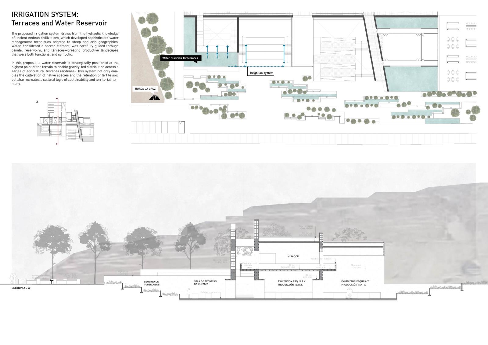 Drawing inspiration from identifiable architectural elements in the huacas — such as platforms, walls, and paths — the project seeks to integrate into the archaeological context without replicating or overpowering it. Through public spaces and pedestrian connections, the proposal offers an open architecture that encourages visitors to rediscover the heritage landscape from a contemporary perspective.