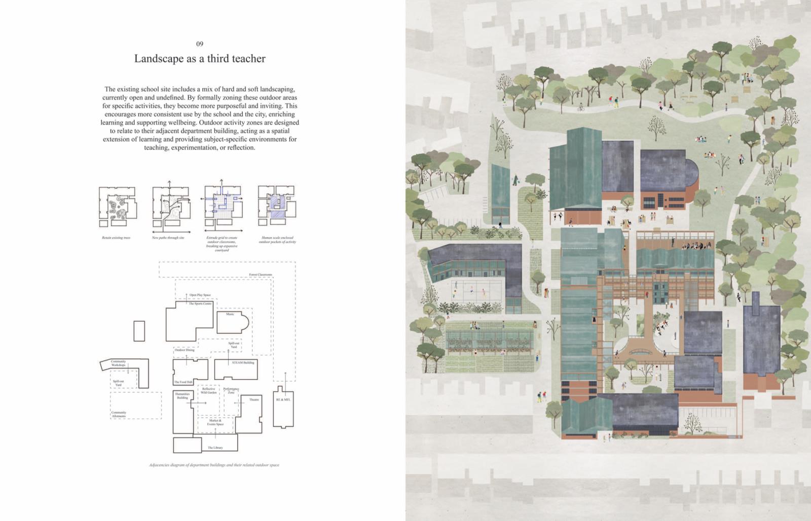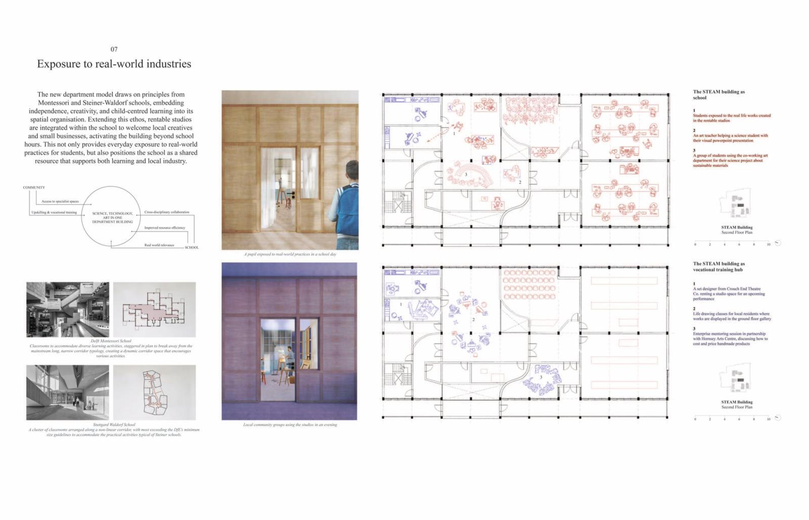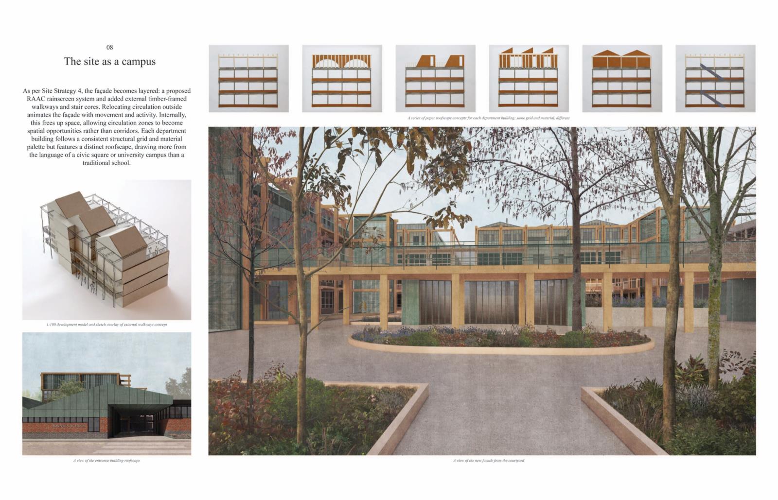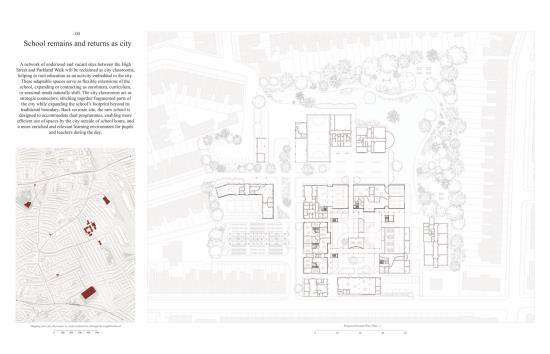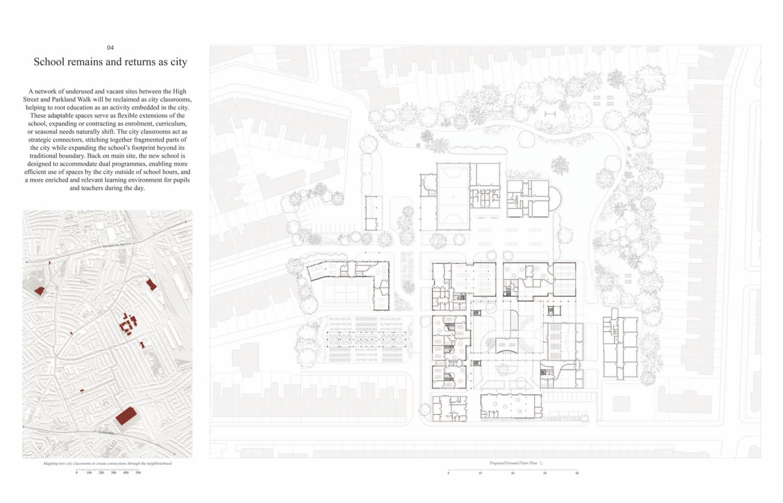 The thesis uses the RAAC crisis as a catalyst to question not only the technical failure of a material, but the deeper typological redundancy embedded in the UK's mainstream school system. Using Hornsey School in Haringey as a testbed, the project responds directly to DfE policy on RAAC management and capital funding, critiquing the current tendency towards like-for-like replacement with a radical alternative which can benefit both education and the wider civic landscape. Rather than treating decant as temporary disruption, the project reframes it as a design tool, using the relocation of students into nearby civic buildings to test new spatial models for learning. These include libraries, coworking studios, parks, and town halls, which offer multi-sensory, real-world learning experiences that surpass the limits of traditional classrooms. The pedagogical insights gained from this urban dispersal directly inform the design of a new school typology: not just a rebuilt school, but a future-facing civic institution, co-owned by its community, embedded in its context, and capable of evolving over time.