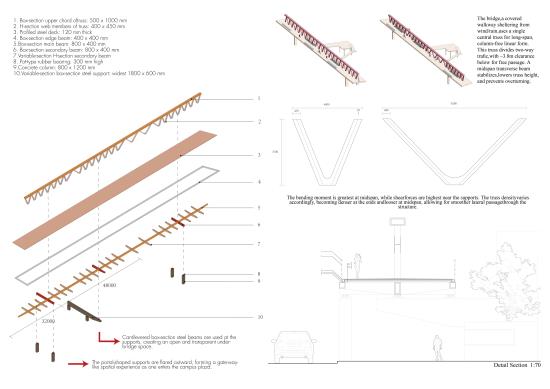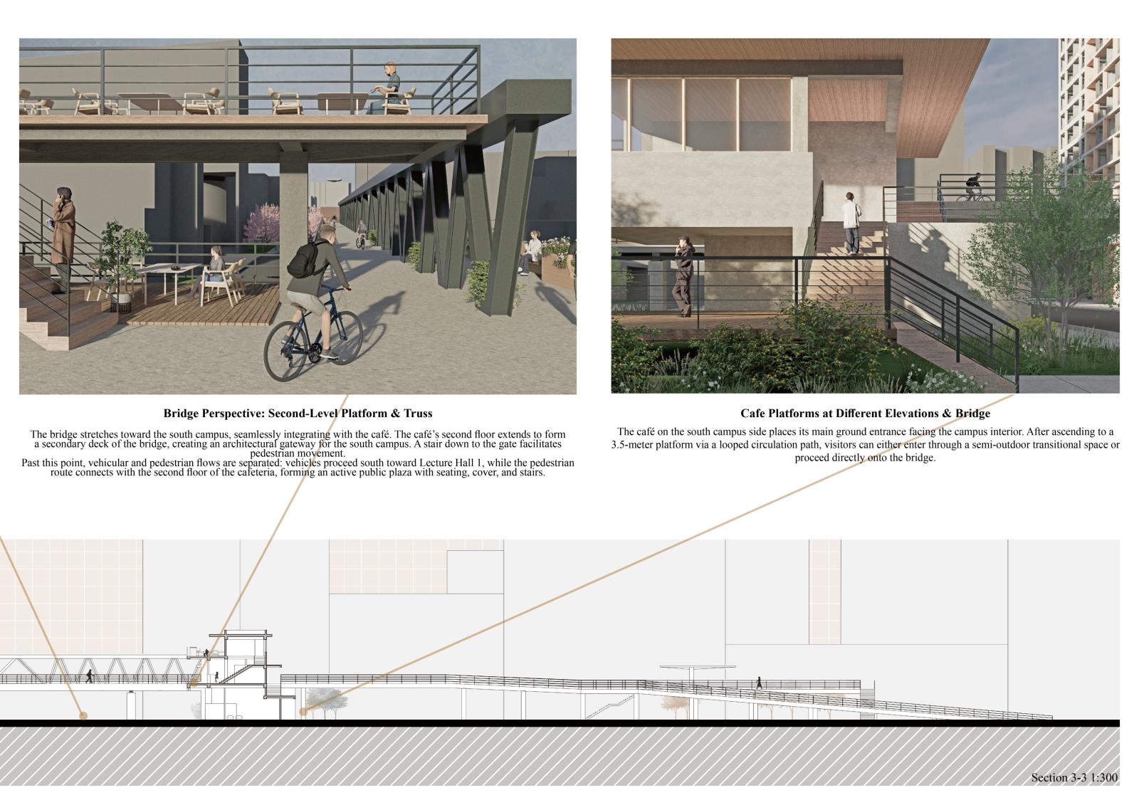 By seamlessly integrating spatial and structural design, the project not only solves circulation challenges but also cultivates a dynamic, sustainable campus community where infrastructure becomes social catalyst.