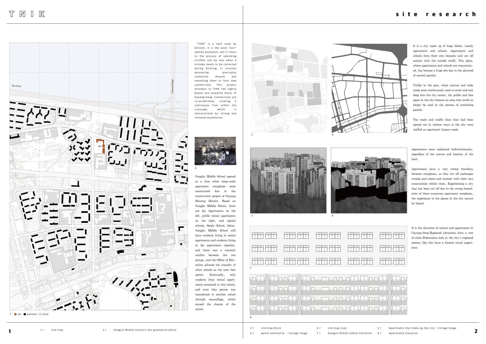 The “Tink” project renovates the closed Gongjin Middle School into a shared space, aiming to create a community beyond apartment complexes. Gongjin Middle School is located in Gayang-dong, which was rapidly developed into large-scale apartment complexes, regardless of the land’s original character. Each apartment complex reinforced its boundaries, repelling others, until the apartment came to be regarded not just as a place of belonging, but as an extension of personal identity. The communities they formed remained internal, in sharp contrast to the emptied urban streets outside. These subtle tensions between apartments extended even into schools — spaces meant for children. Eventually, Gongjin Middle School was shut down. On this wounded land, we hoped that people would loosen their guarded boundaries, so that such divisions would not repeat. If a community once confined within apartments could emerge here, perhaps it could become a shared place of rest for all. This project begins by dismantling the existing retaining wall and revealing the original terrain. Exterior, semi-exterior, and interior spaces intersect, creating loose and fluid relationships through ambiguous boundaries. Let’s stop for a moment, and take a breath.