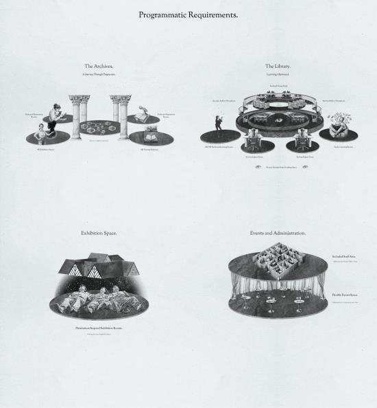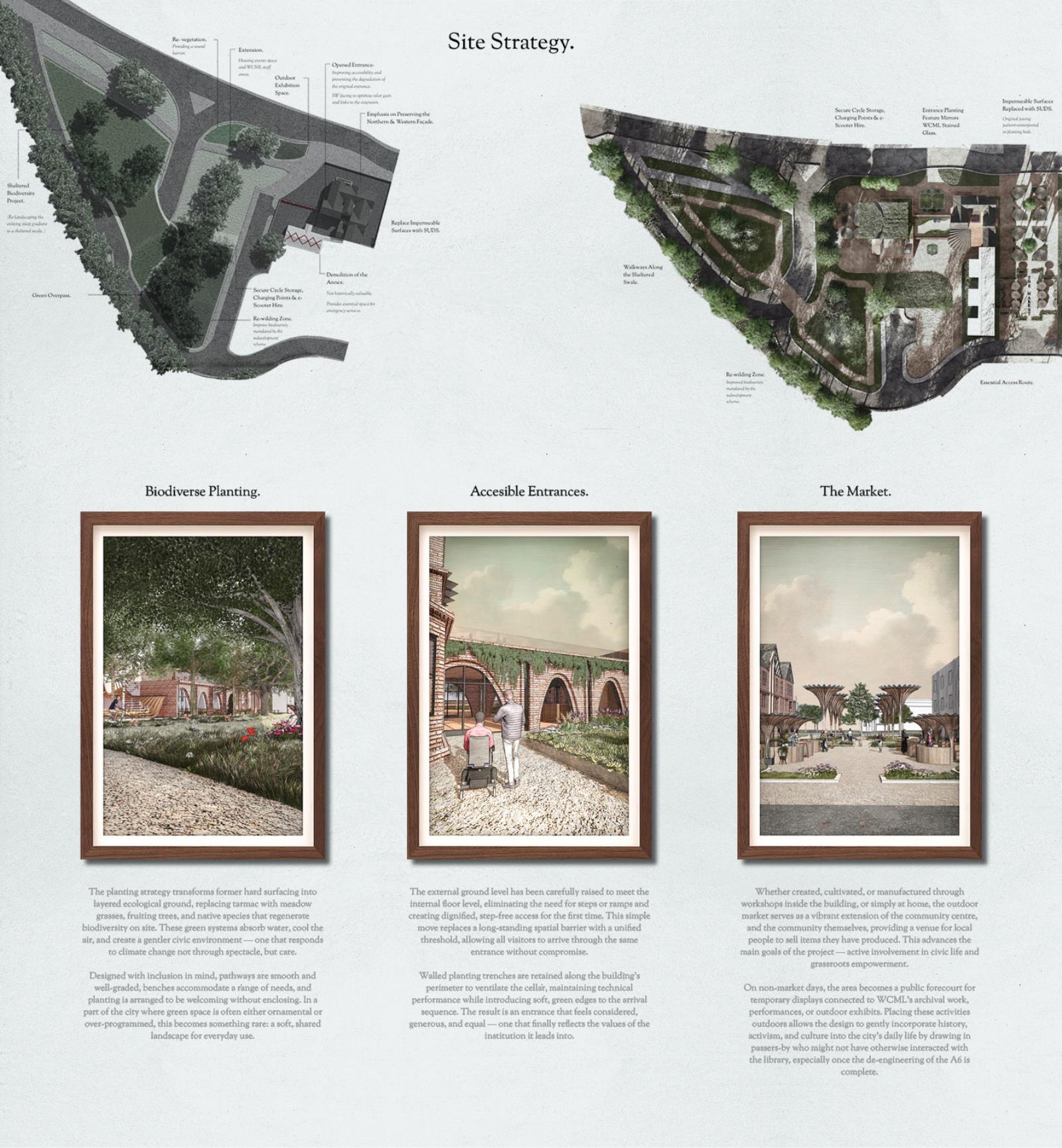 At its core, the scheme treats memory as a shared resource. From climate-controlled archives and outdoor reading rooms to VR exhibits and a civic market, each intervention is carefully designed to balance preservation with participation. The result is a space that protects the past while enabling new futures — a library that doesn’t just hold knowledge, but transmits it.