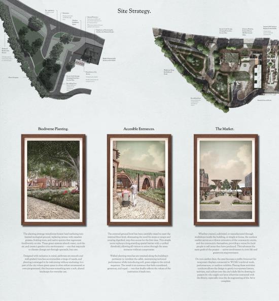 Through a strategy of architectural retrofitting and programmatic zoning, the project separates active and quiet functions, improving accessibility and supporting new forms of public engagement. A rewilded landscape, inclusive entrances, and immersive archives ensure that the building is open to all — especially to those it was originally built to serve.
