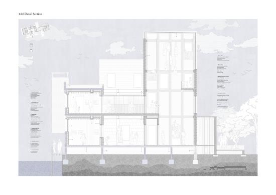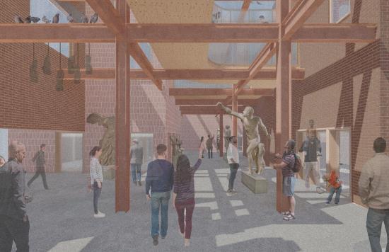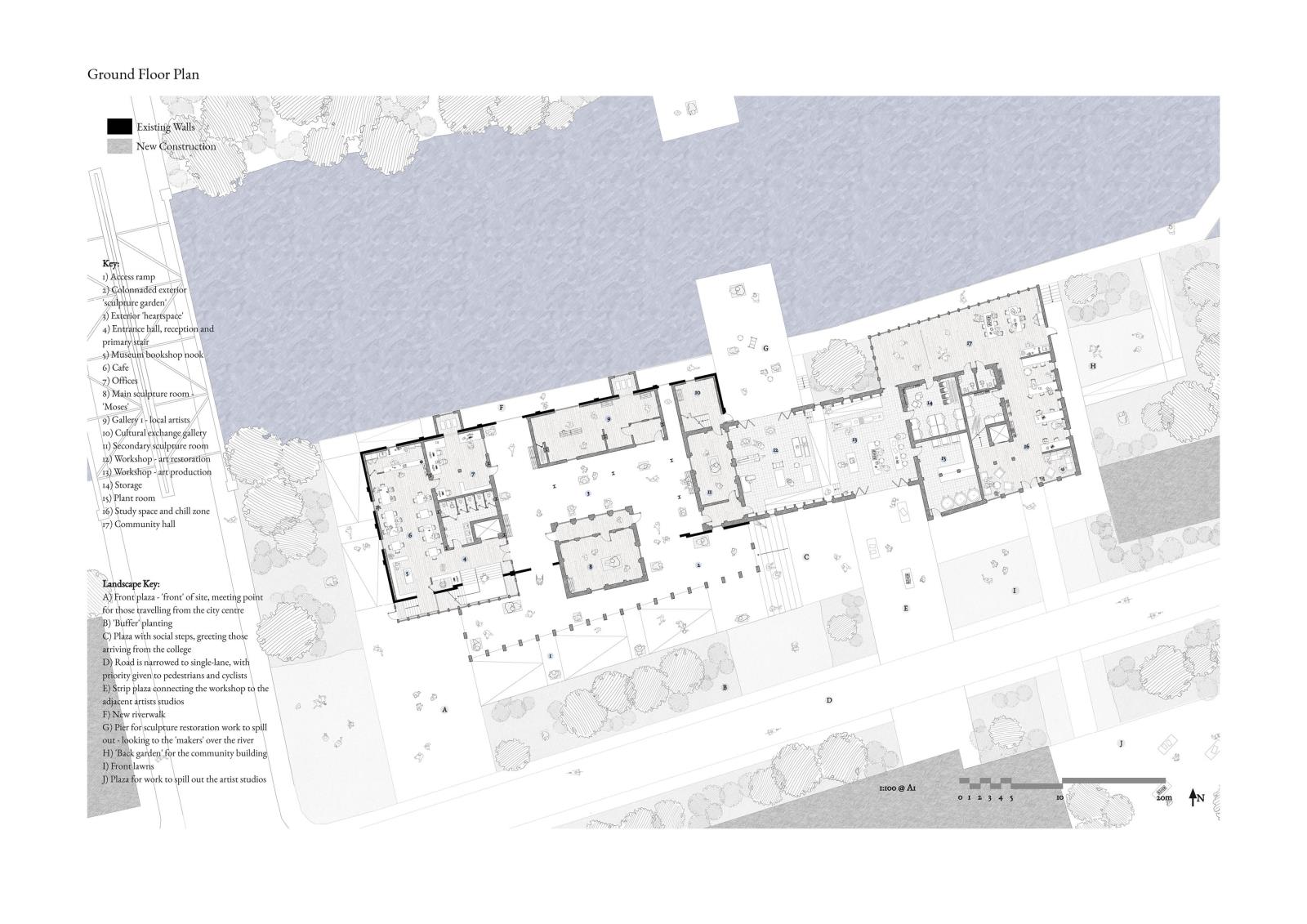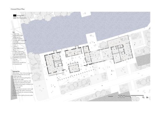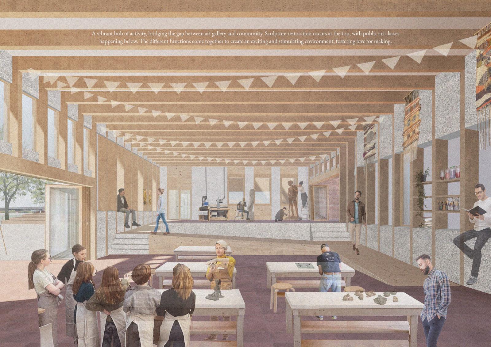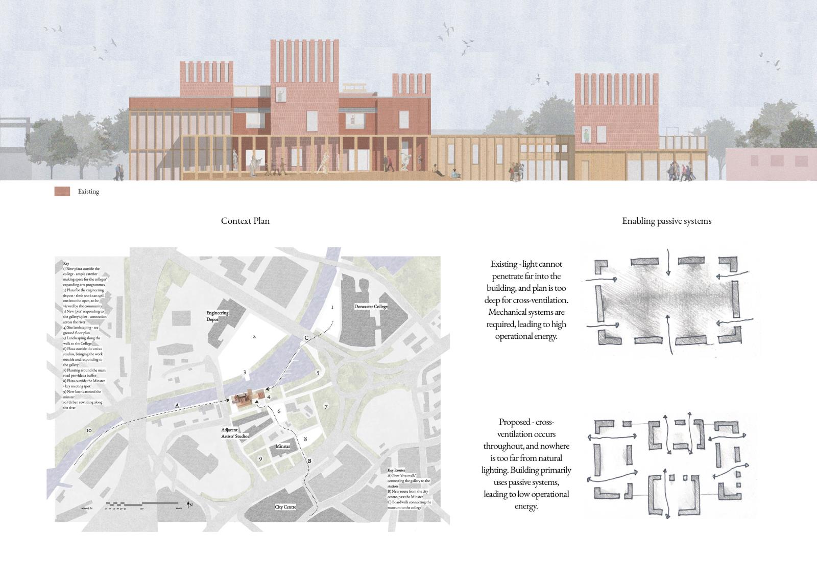 The forgery and making process extends to new-build workshop and congregation facilities - here, the exchange of creative knowledge and ideas fosters a thriving community. Furthermore, archive and study spaces lead to a rejuvenation of creative interest for the nearby Doncaster College.