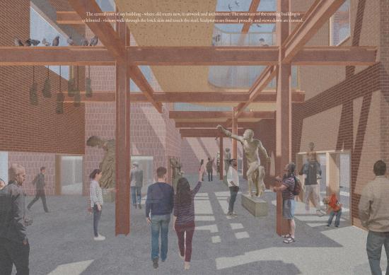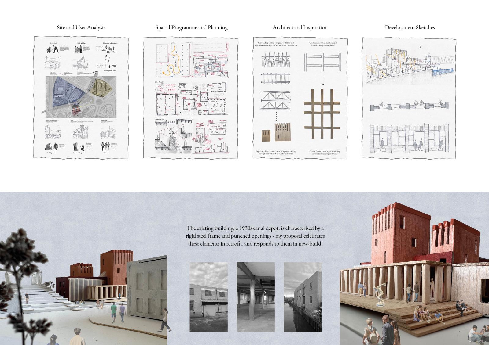 A retrofit scheme to revitalise an old canal depot into a cultural centre for Doncaster. Forged artwork is housed in the gallery spaces, and its 'authenticity' inspires the architecture - the existing building is partly rigorously retrofitted and partly exposed to the elements.