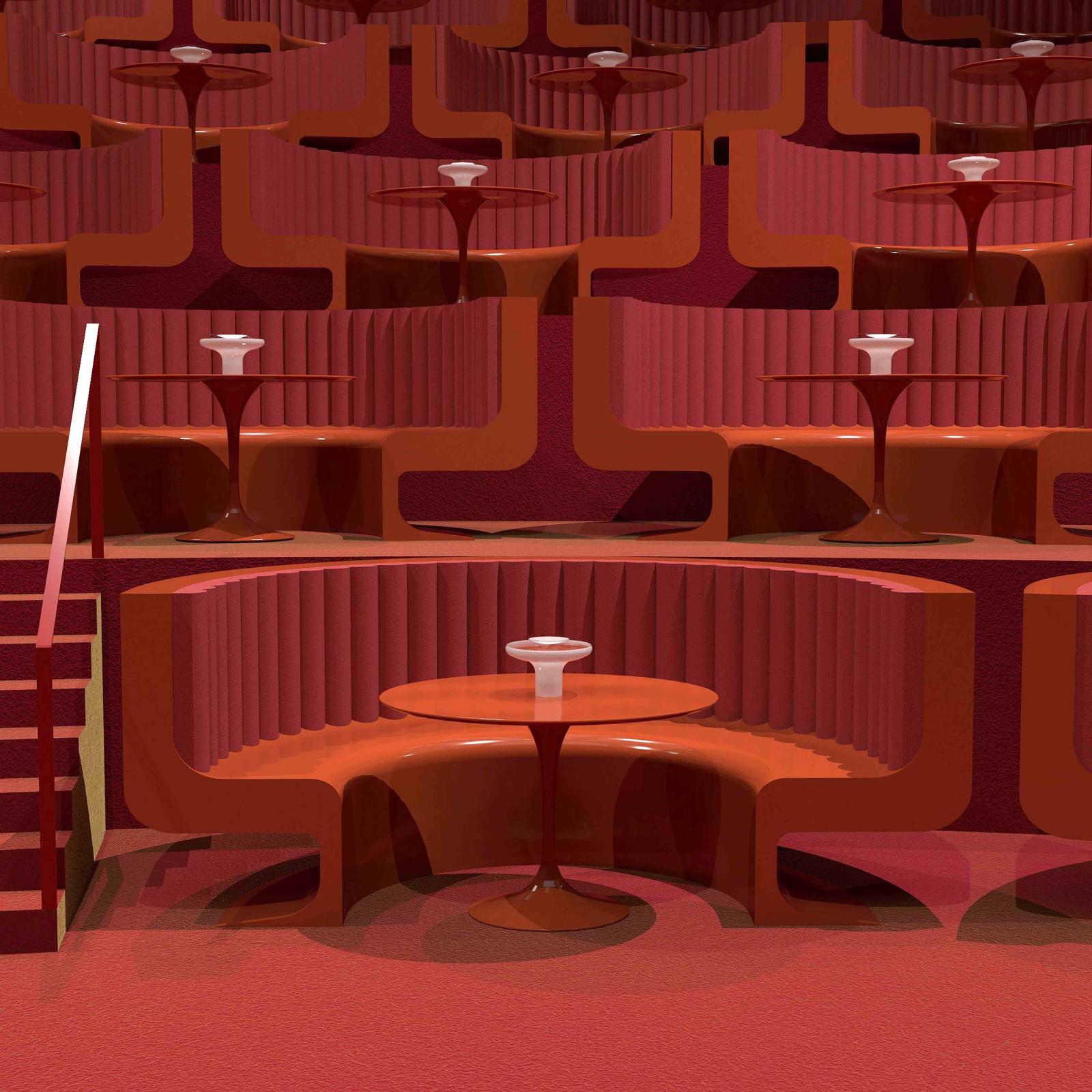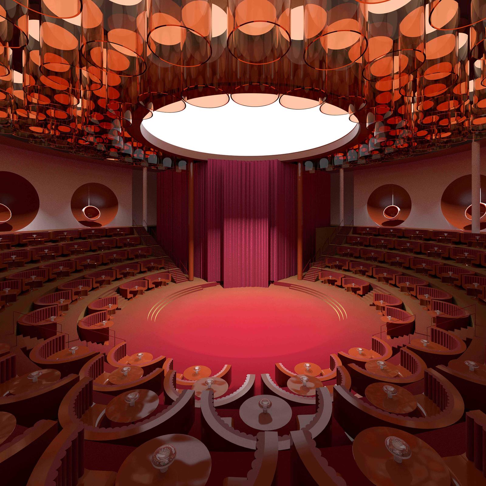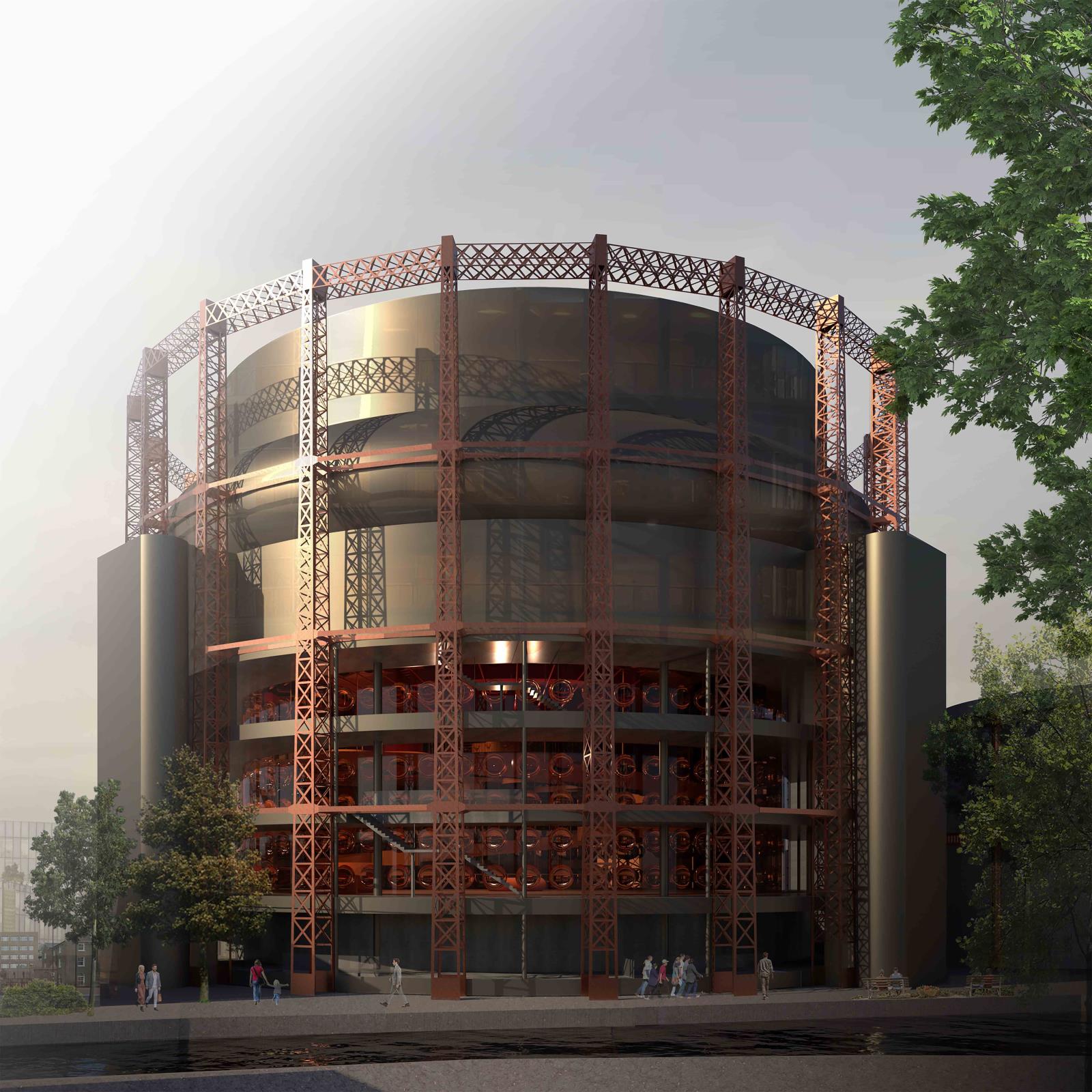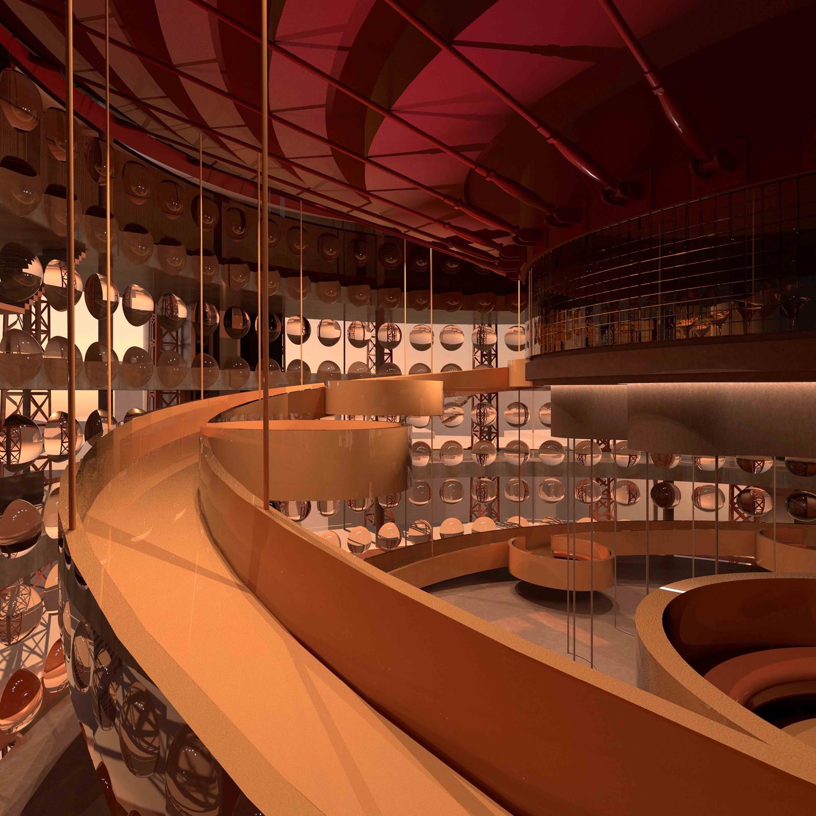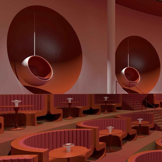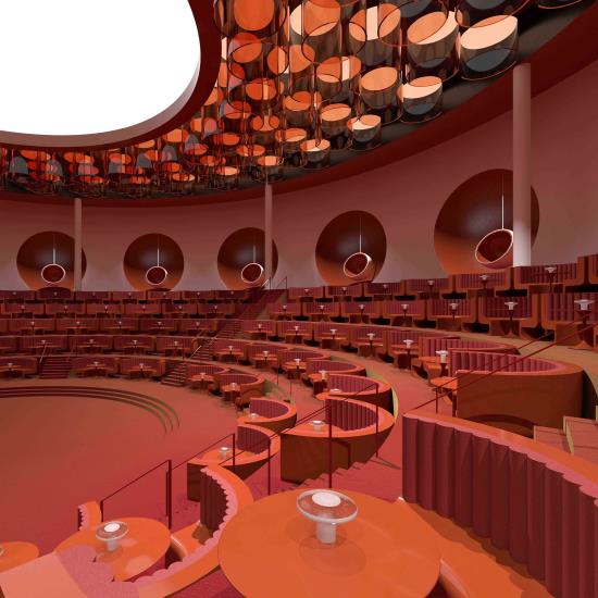 The architectural strategy centers on adaptive reuse, transforming the gas holder’s industrial frame into a vibrant, future-oriented destination. The interior design embraces fluid geometries, curved fibreglass walls, tiered seating, and tactile finishes that evoke the optimism and experimentation of the 1970s.