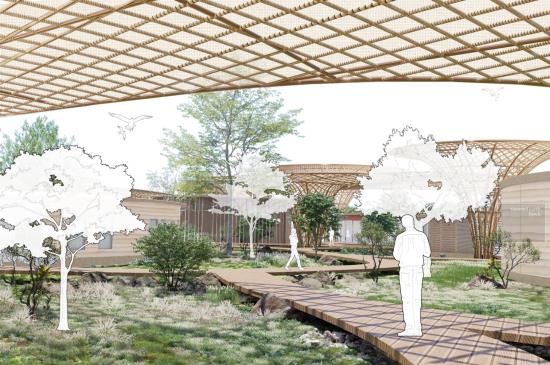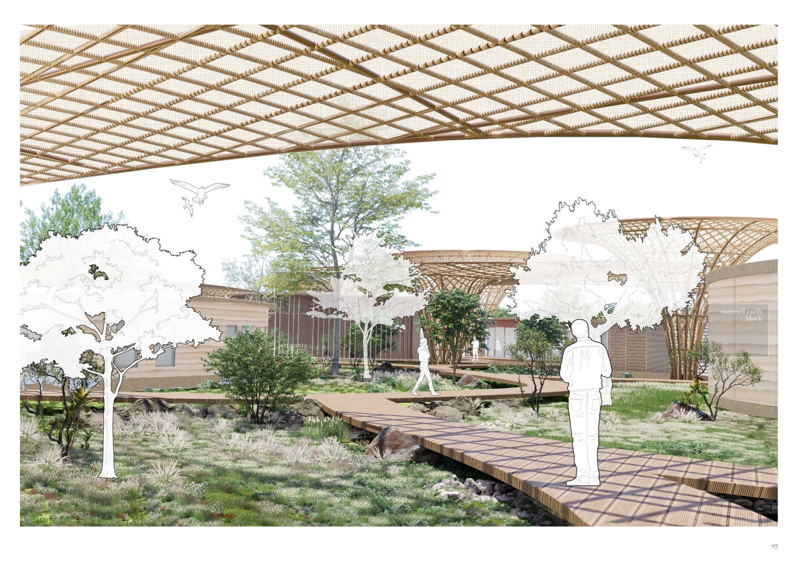 The design uses elevated walkways to tread lightly on the land, natural materials rooted in context, and sheltering canopies that serve both people and local wildlife. In doing so, it explores how built form can become part of a living ecosystem - offering space for curiosity, coexistence, and care.