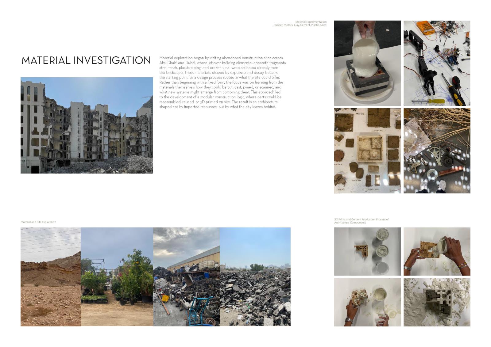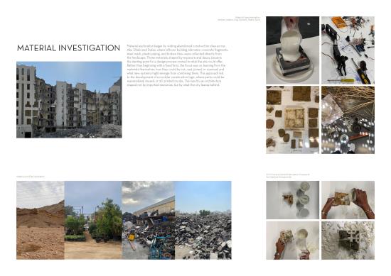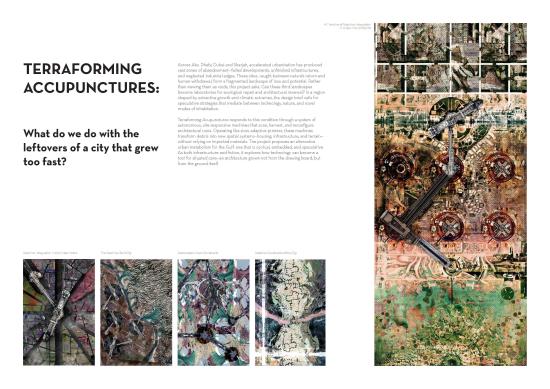 Terraforming Acupunctures emerged from exploring abandoned sites across Abu Dhabi and Dubai, where we encountered ruins and leftover materials that reveal urgent environmental challenges caused by rapid urban growth. Our project reimagines these degraded landscapes as opportunities for sustainable regeneration adapted to the Gulf’s climate.