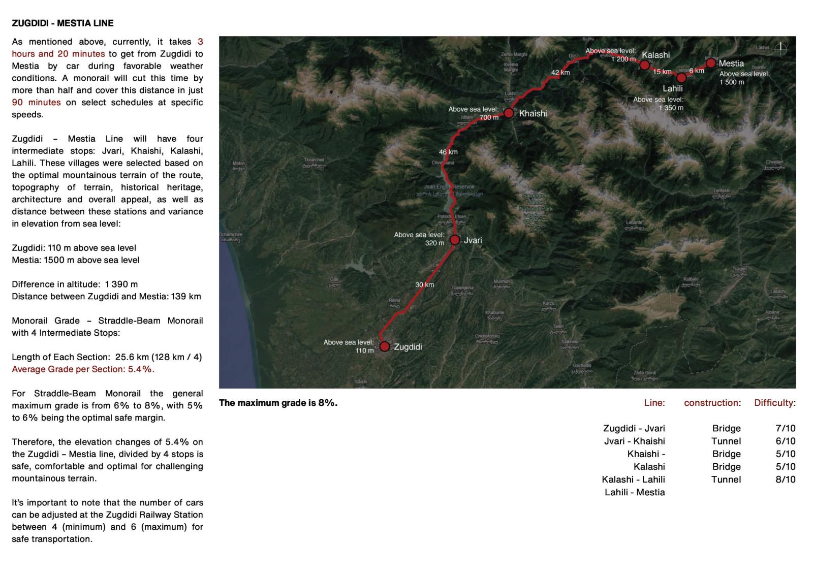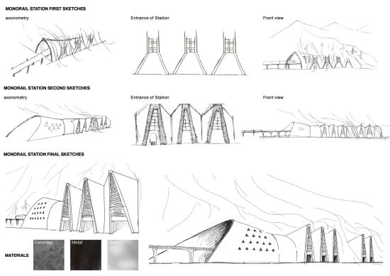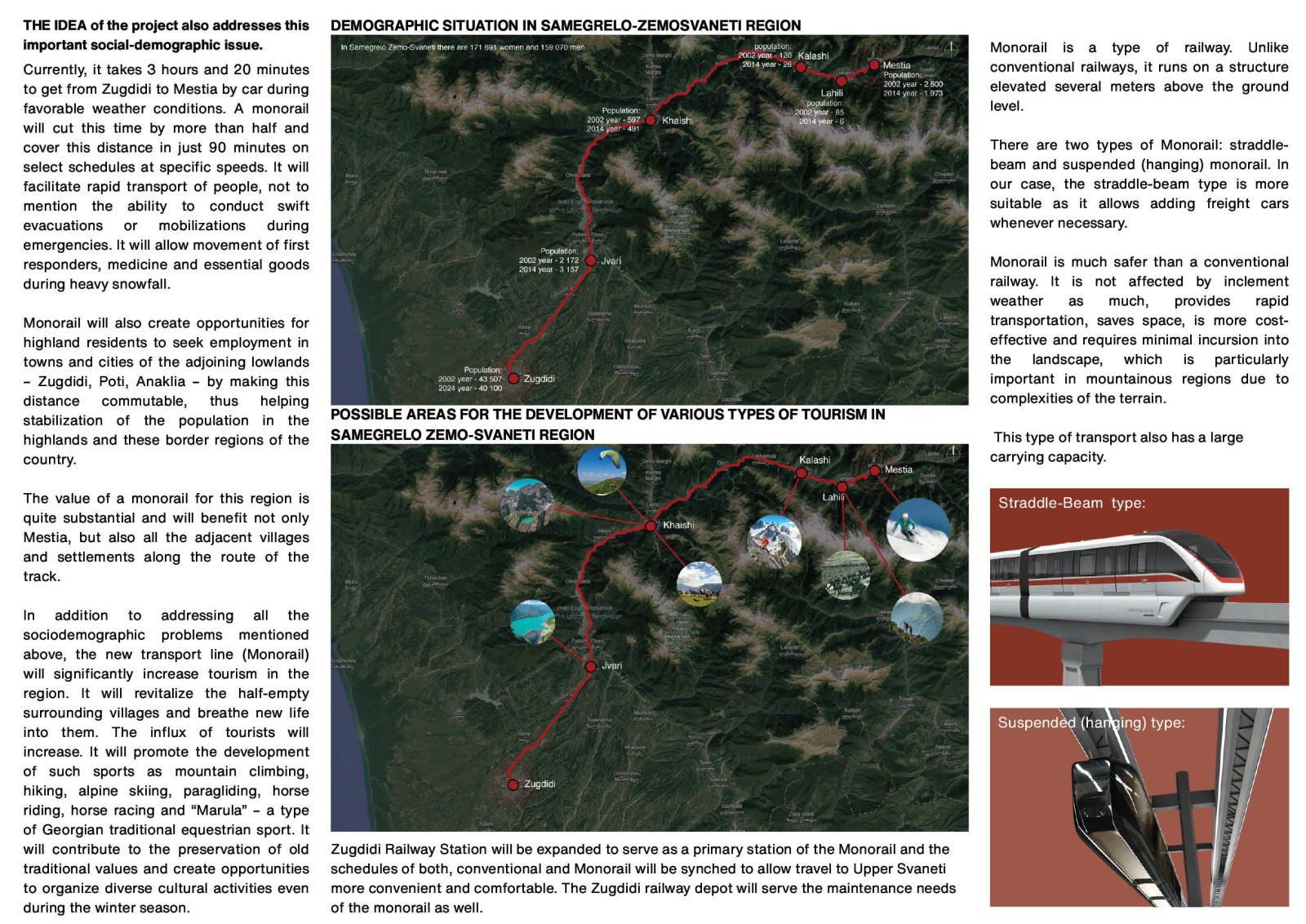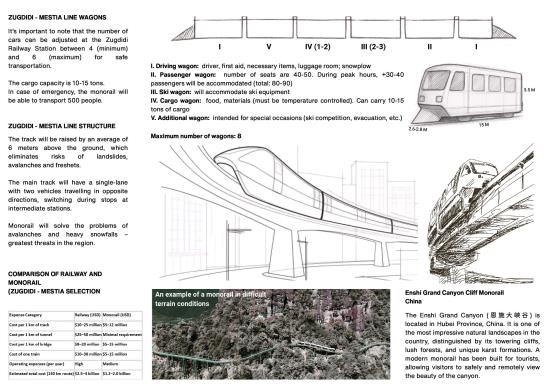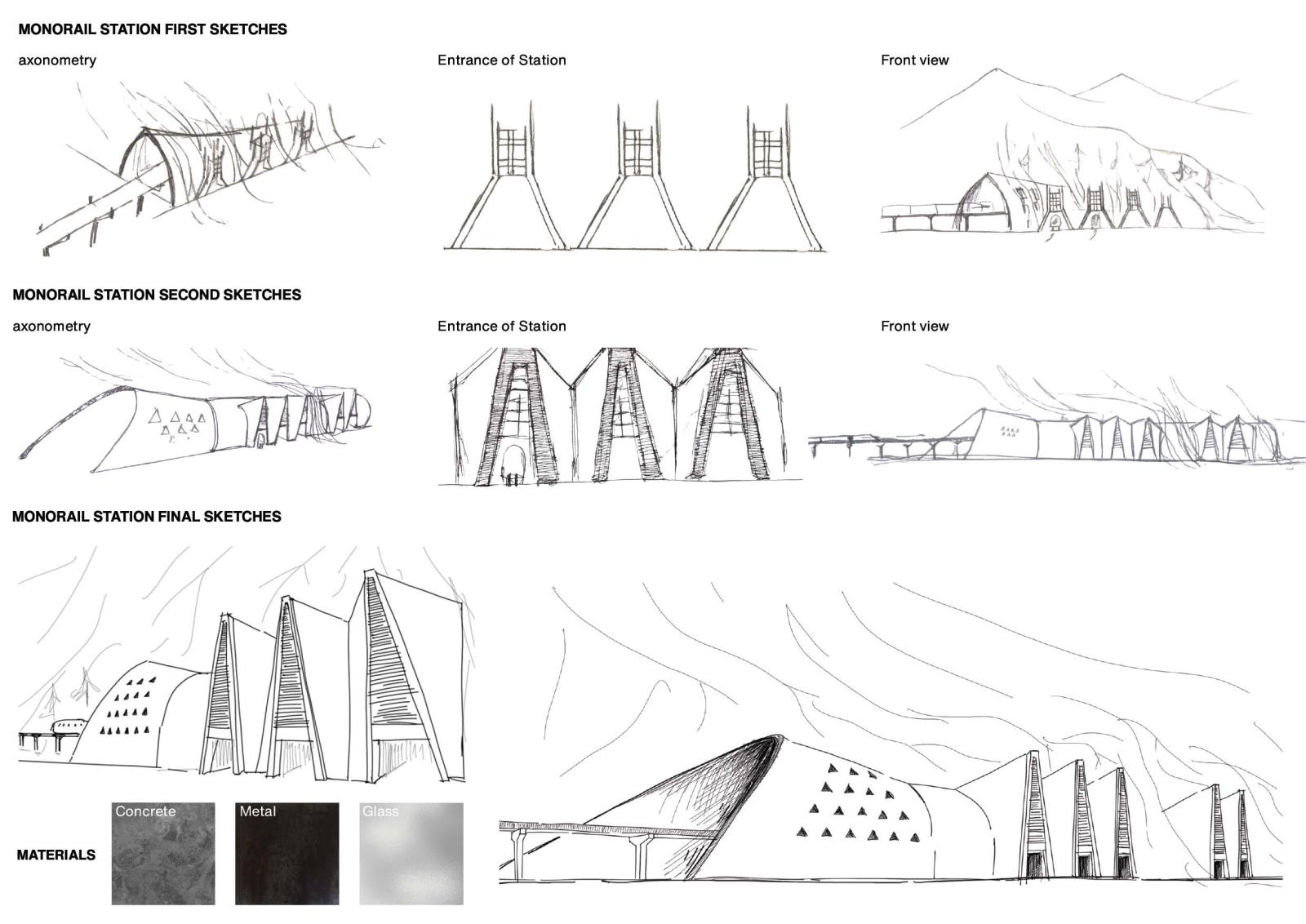 Monorail Station in Mestia: Connection with the world Part 1 Project 2025 Lizi Nioradze Caucasus University Tbilisi | Georgia This project envisions a sustainable electric monorail connecting Zugdidi to Mestia in Georgia’s Svaneti region—an area often isolated during winter due to extreme terrain and weather. The concept merges transportation infrastructure with social responsibility, aiming to bridge the physical and economic gap between remote mountain communities and urban centers.The primary aim is to ensure year-round, safe, and ecological mobility while preserving the natural landscape and cultural identity of the region. The monorail provides a clean alternative to traditional road expansion, reducing carbon emissions and preventing further damage to fragile ecosystems. By enabling access to education, healthcare, markets, and tourism, the project empowers local residents and fosters regional development.The outcome is not just a transit system, but a lifeline—a resilient thread connecting people, nature, and progress. Through careful integration of topography, weather conditions, and community needs, the project demonstrates how architecture and infrastructure can be tools for equity and inclusion.This work highlights the role of architects in reimagining mobility as a form of care. The Zugdidi–Mestia Monorail is a response to both environmental urgency and social isolation, proposing a visionary yet grounded approach to designing for remote futures. Tutor(s)