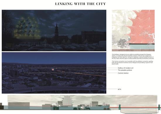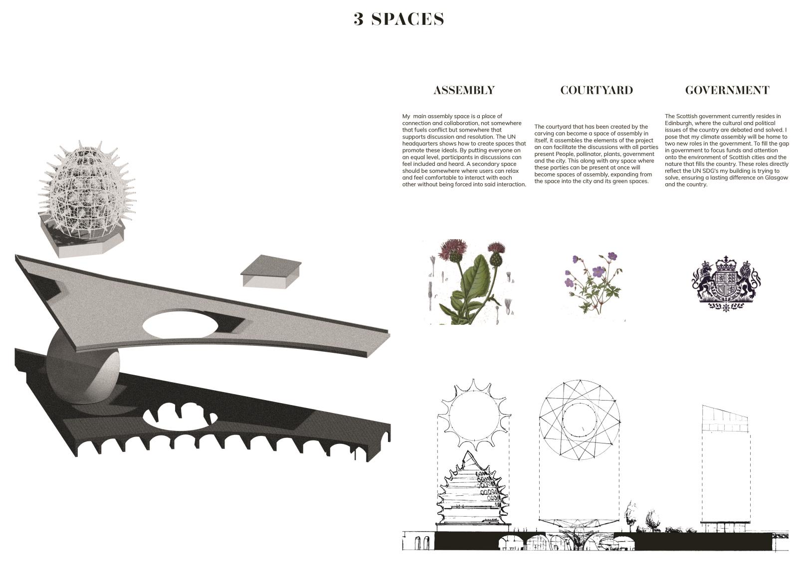 This project aims to be a space for discussion of political climate issues amongst the people and Scottish government. It brings together the important contributors of Glasgow’s natural and human environment in a space of discussion. This cohabitation exists to include all parties in discussions of climate issues, valuing all groups equally.