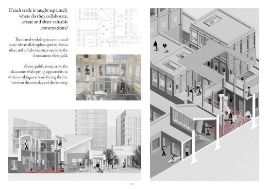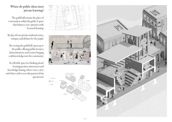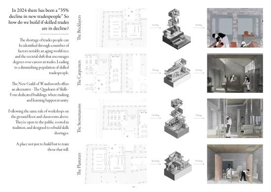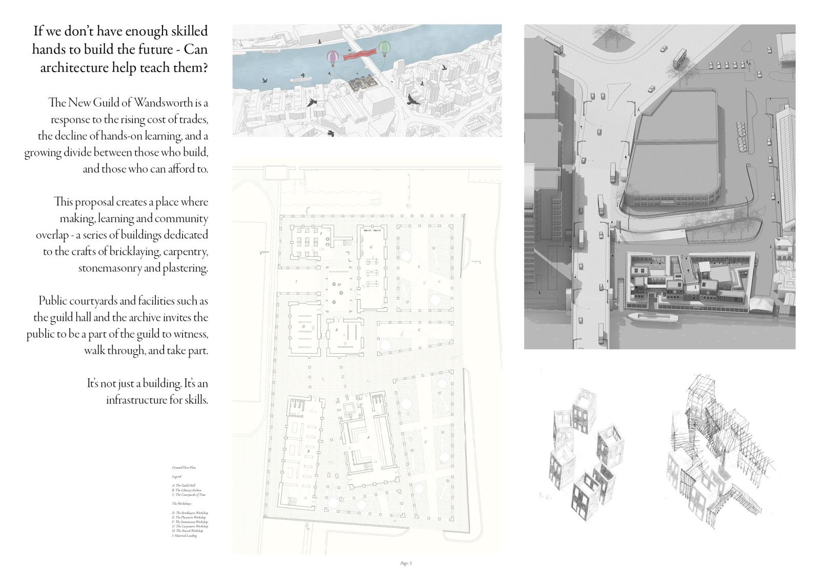 ‘The New Guild of Wandsworth’ is an infrastructure of skills - a place for learning, collaborating, and making. A ‘Guild’ where crafts and public life converge through workshops, archives, halls, and courtyards.