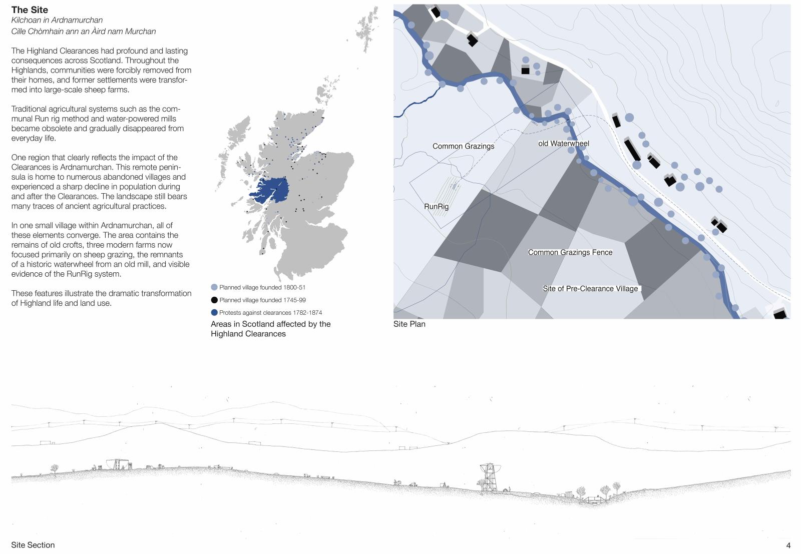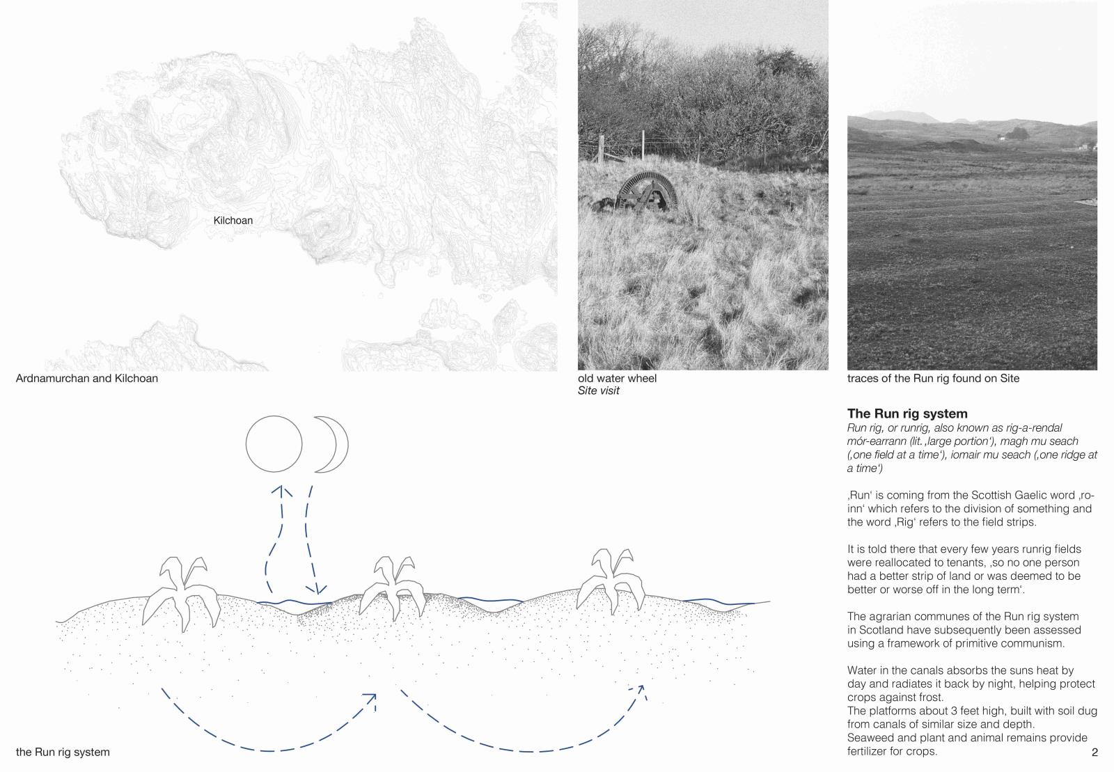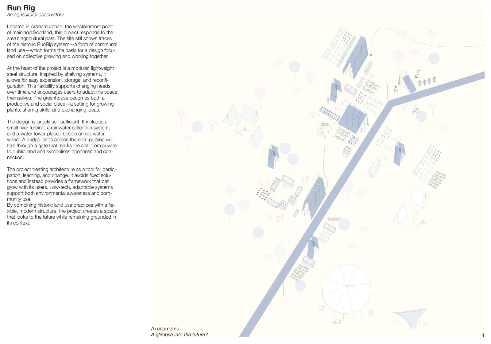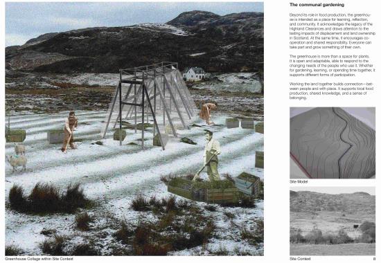 Located in Ardnamurchan, the westernmost point of mainland Scotland, this project responds to the area’s agricultural past. The site still shows traces of the historic RunRig system—a form of communal land use—which forms the basis for a design focused on collective growing and working together.