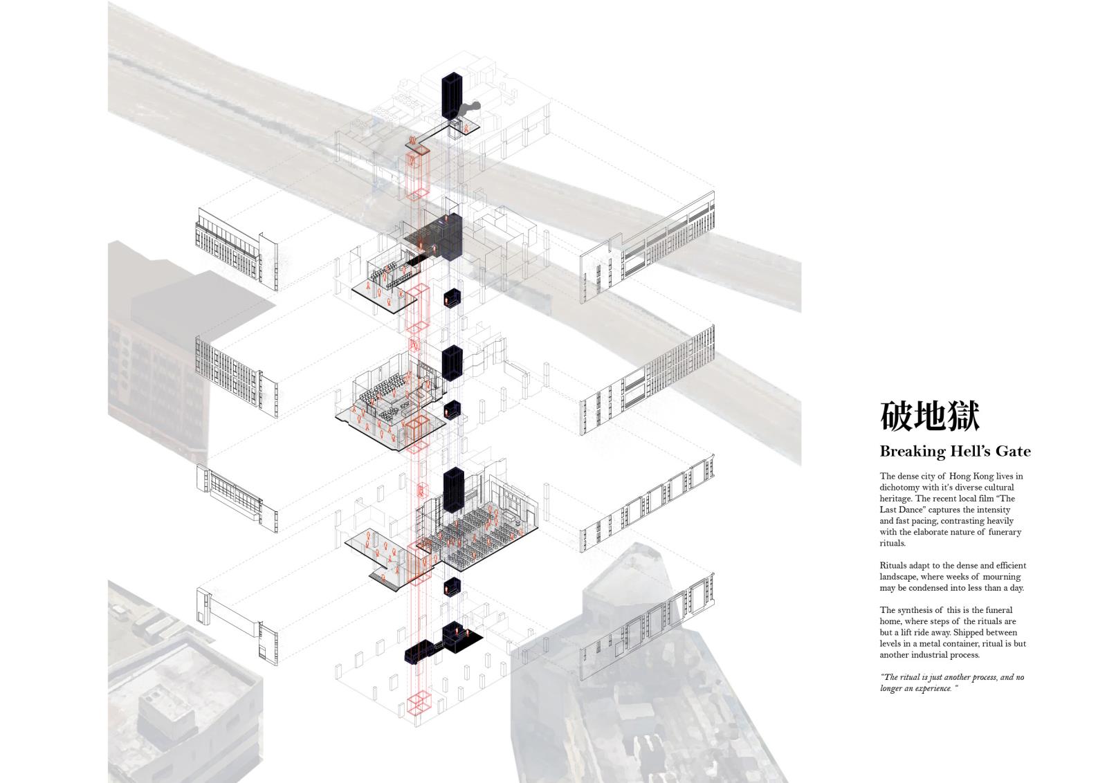 This project aims to enable an alternative burial method in Hong Kong, with water cremation being the burial method chosen. Architecture is deployed to bridge the industrial nature of the process, and the ritualistic nature of funeral practices, encouraging the acceptance of the process. Water cremation is a chemical process with no harmful emissions, comparing to the high emissions stemming from traditional cremation being the main burial practice in Hong Kong.