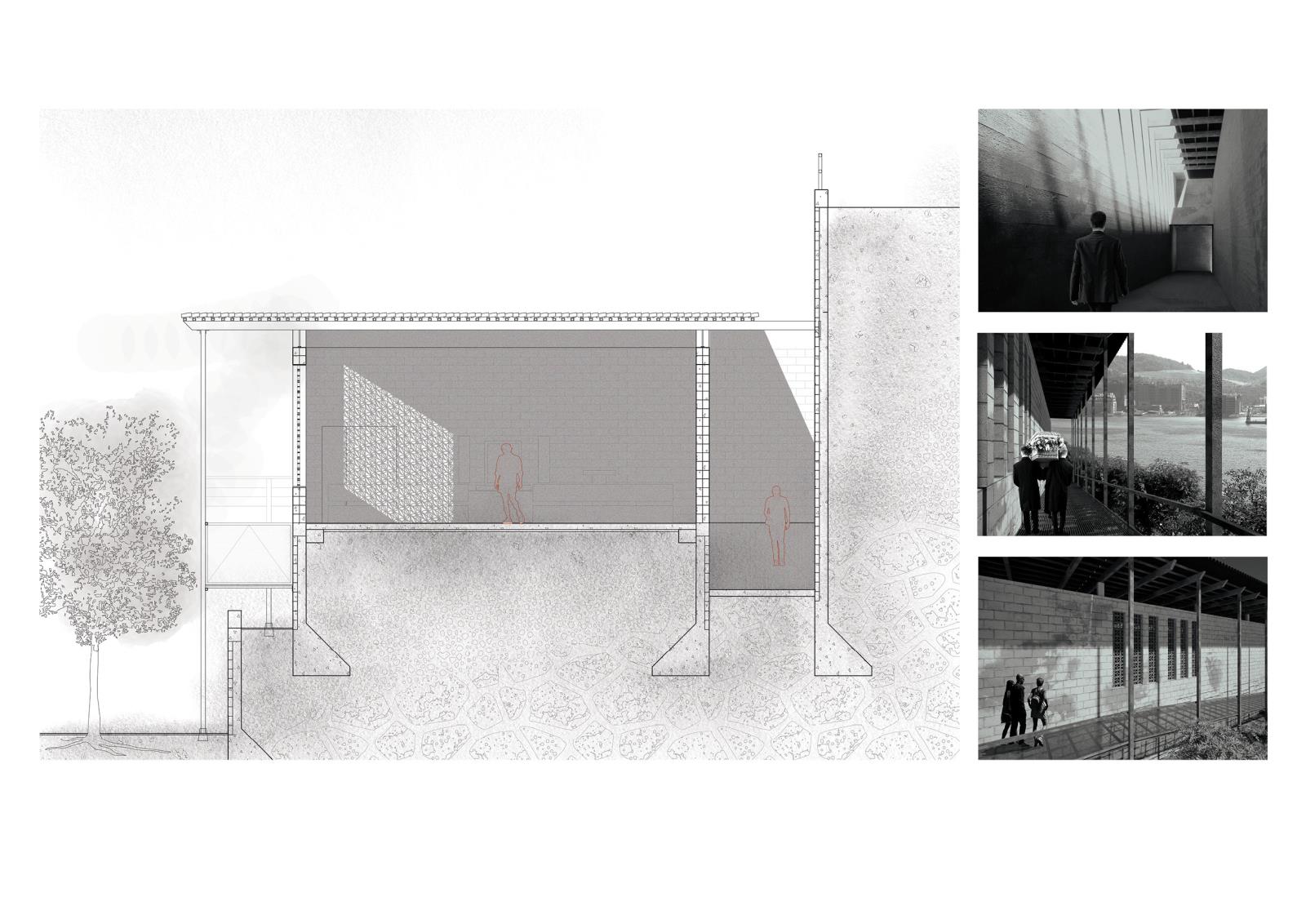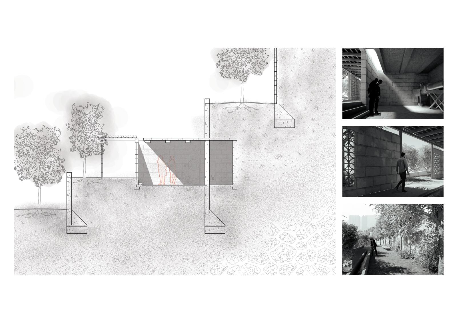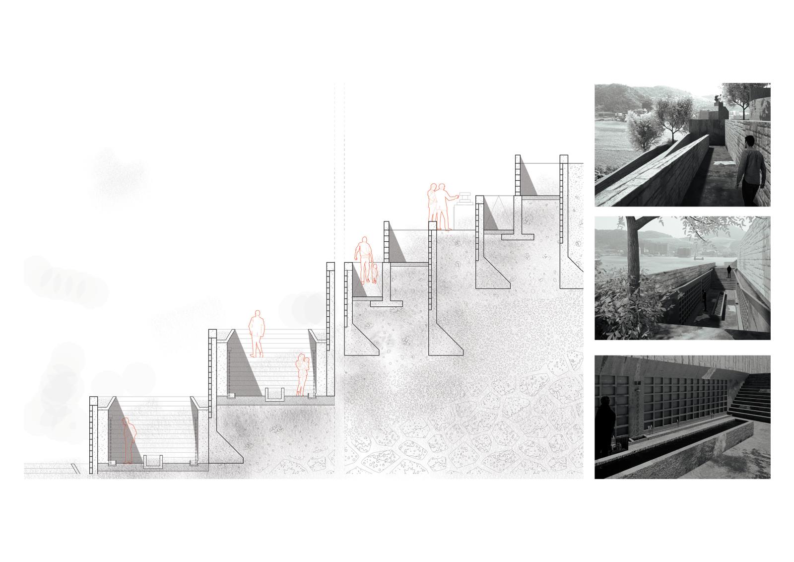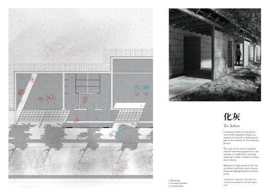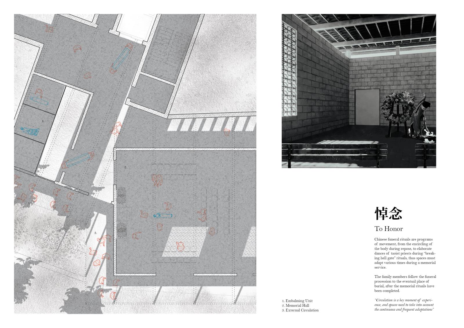 The project identifies the lack of ritualistic funerary spaces in the efficient context of Hong Kong, and aims to enable both the elaborate funeral rituals, and moments of reprieve for the mourners, aiming to create a complete experience from memorial, cremation to burial, to imagine a complete burial package for this alternative process. The process of water cremation provides a catalyst for water to be a motif throughout the site and as a cultural symbol of life, accompanying the mourners through various stages of the process.