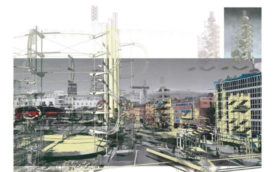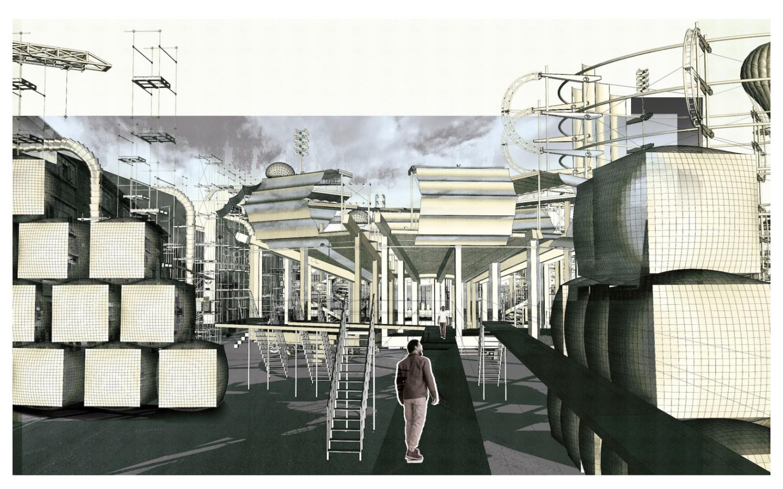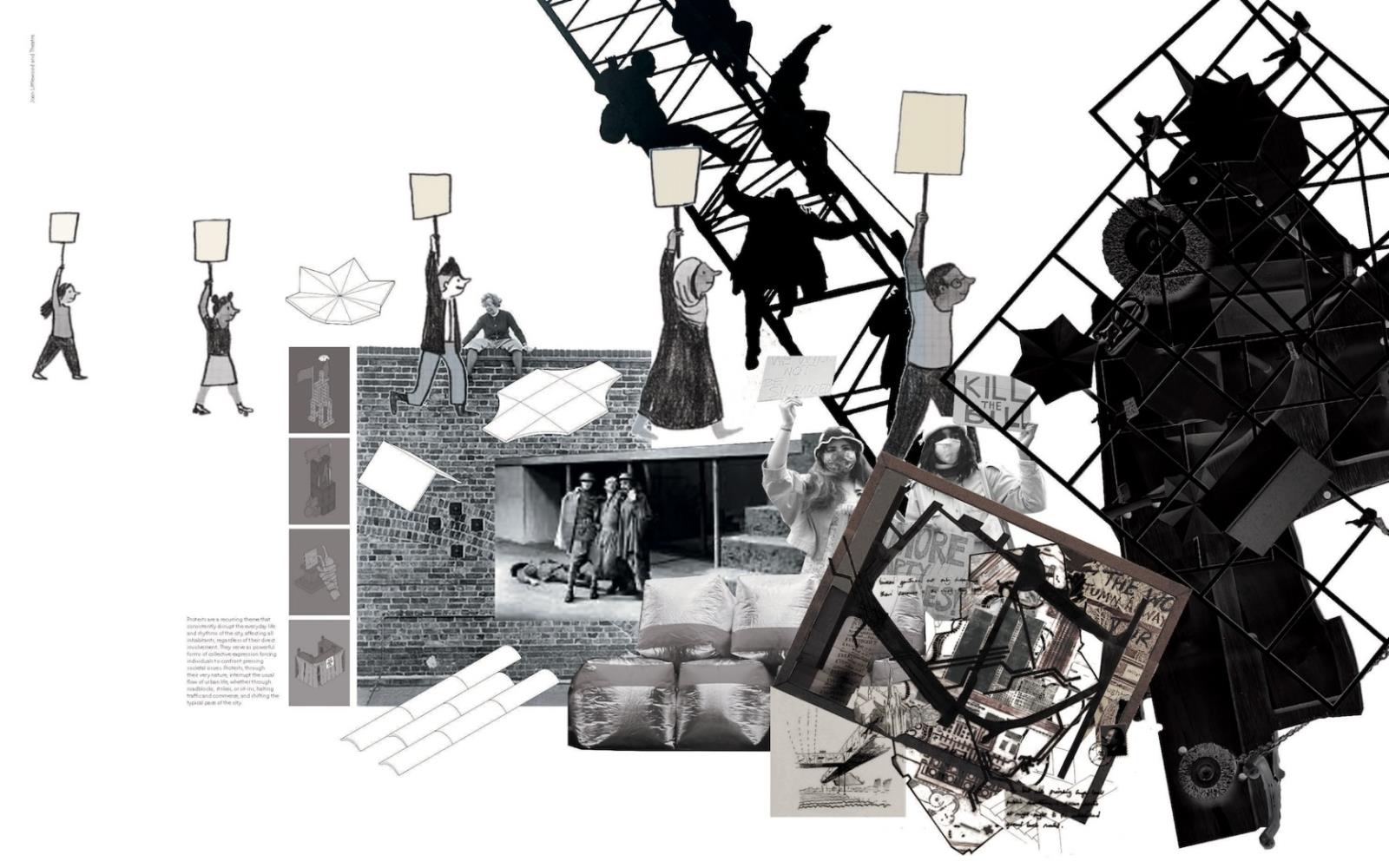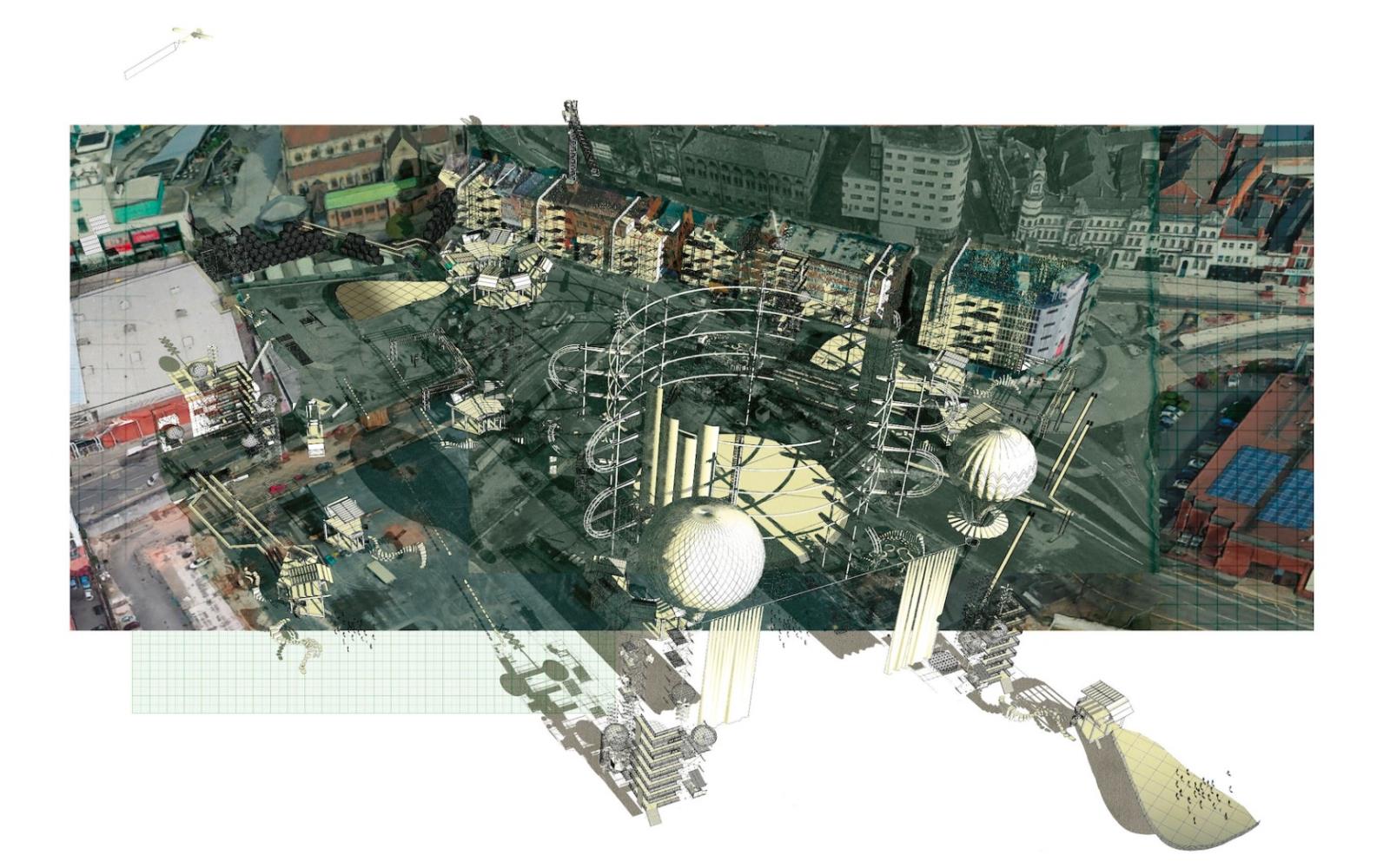 My thesis explores anti-urbanism and unitary urbanism that challenges conventional planning by embracing temporary, flexible uses of space. Inspired by the Situationist International (SI) and Joan Littlewood, it promotes a city shaped by protest, and public participation rather than capitalist control. Littlewood’s Fun Palace, designed with Cedric Price, envisioned a flexible, user-led environment, a vision echoed in this proposal for Birmingham’s Smithfield site.