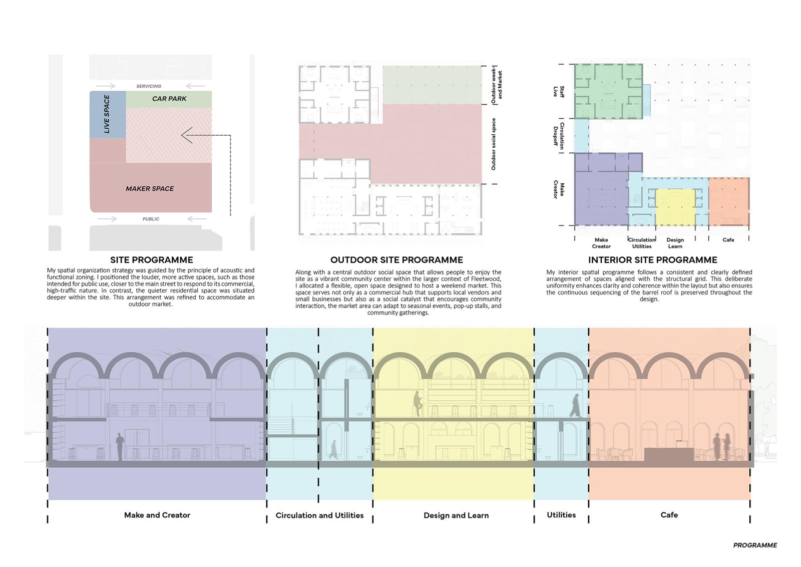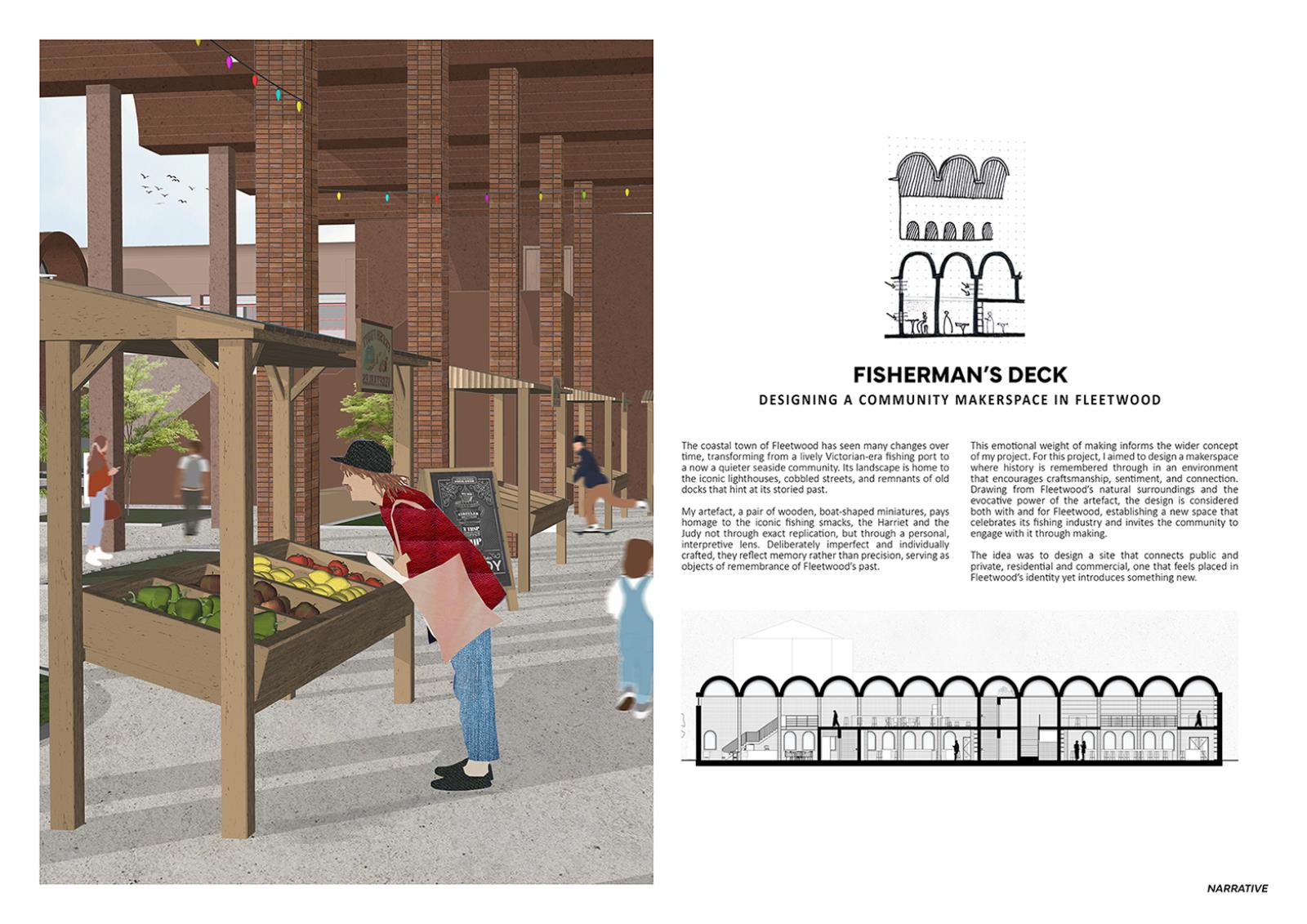 Drawing from Fleetwood’s natural surroundings and the quiet power of creating something by hand, the design is considered with and for Fleetwood, establishing a new space that celebrates its fishing industry, connects public and private, residential and commercial, and feels placed in Fleetwood’s identity yet introduces something new.