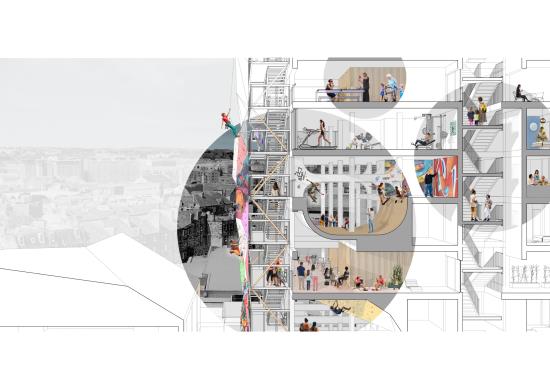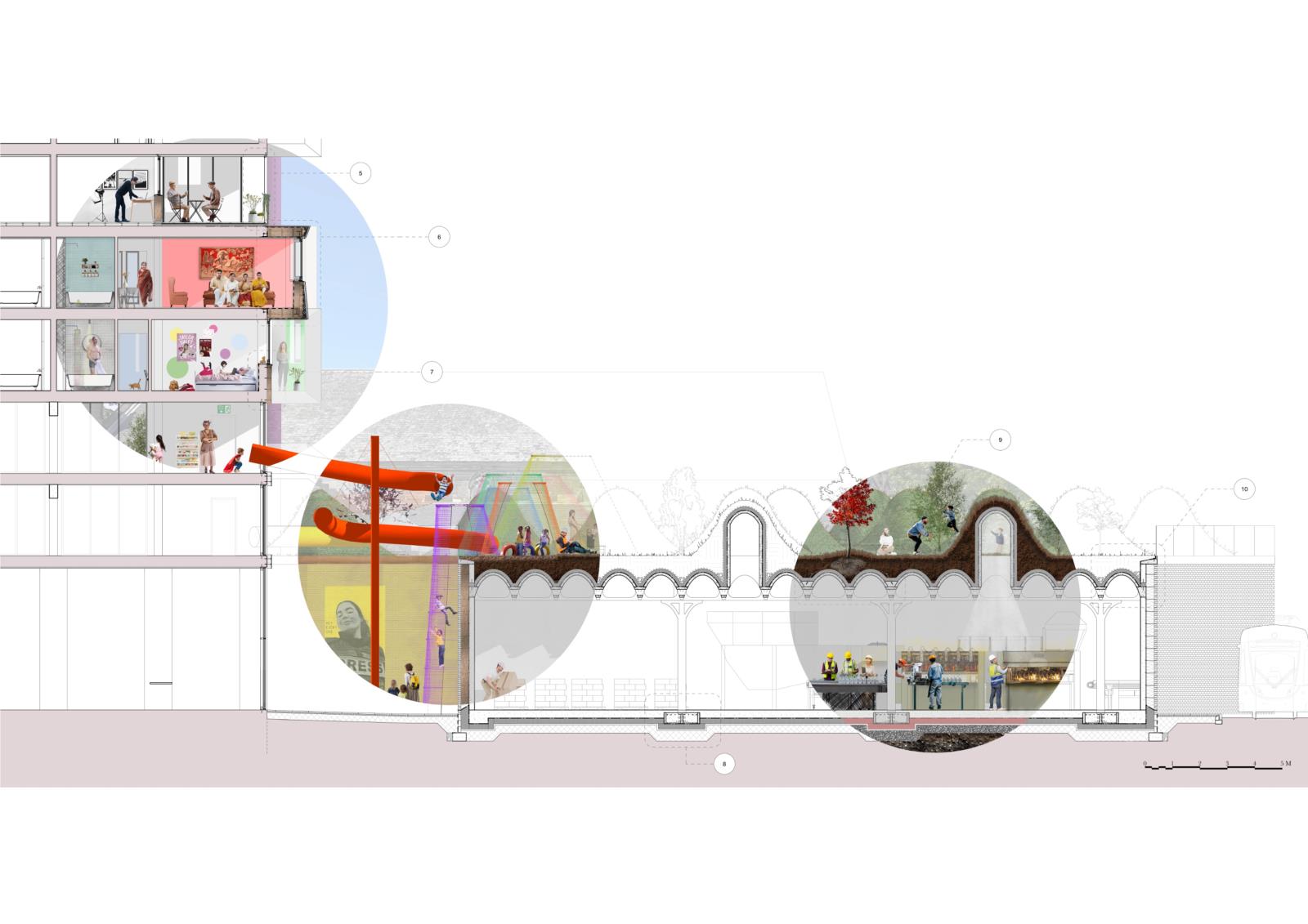 Old / New: A diverse programme of spaces is reintroduced that allows living, working, and playing to coexist.