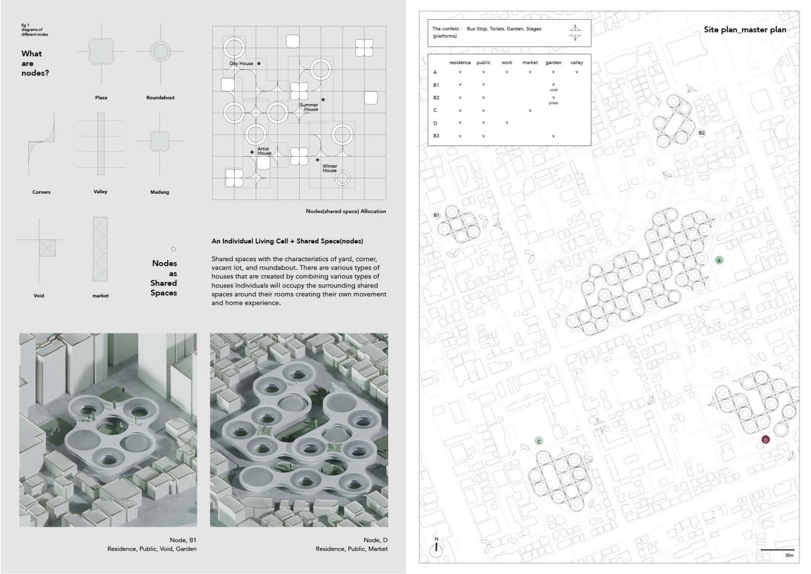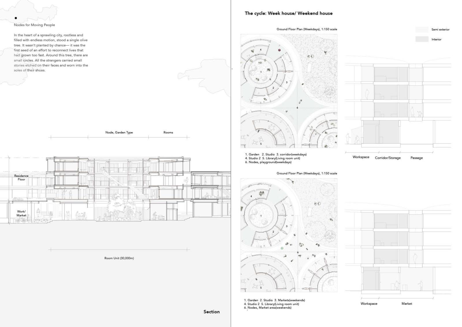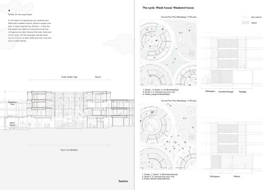 Nodes are important because they are in-between spaces that change roles based on people’s needs and times of use. Along the journey of moving people, nodes become places for exploration and exchange, where people of different backgrounds can gather, interact, and share stories. The project aims to create city nodes that create exchanges between various people moving around.