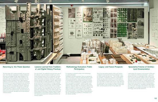 This thesis counters modernism’s aversion to ornament, particularly Adolf Loos’s “Ornament and Crime,” by proposing a design approach inspired by John Ruskin’s ethics of craft and Antoine Picon’s digital concept of ornament. It explores a hybrid workflow that combines AI and manual craft to create an act of digital architectural archaeology: shards of memory reimagined for the future.