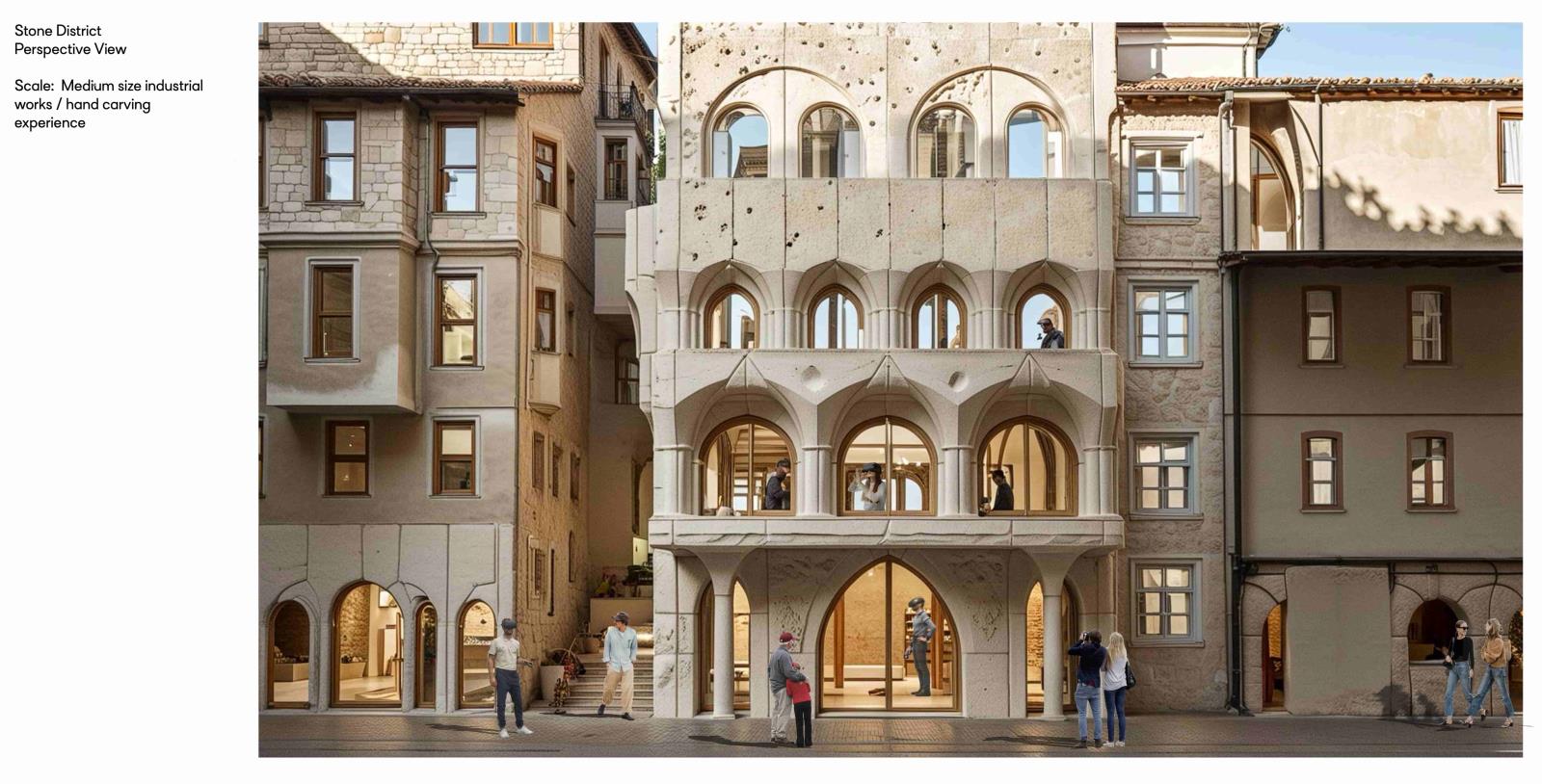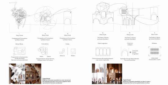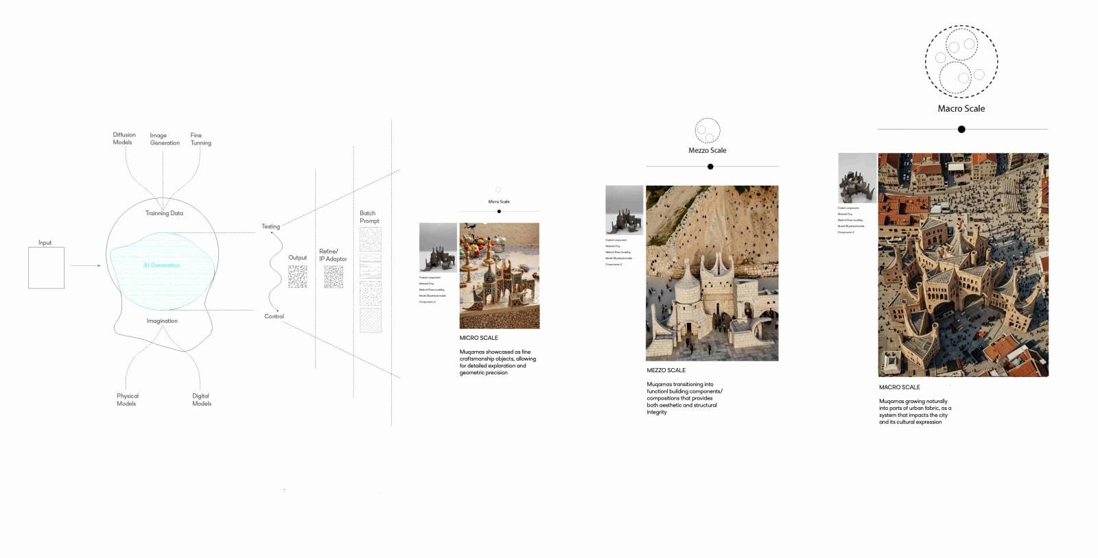 Urban Fractal explores the revival of traditional Turkish craftsmanship through the lens of muqarnas, a decorative architectural element known for its intricate, geometrical design. By investigating the scalability of muqarnas components at different levels—ranging from city objects to structural elements—the project aims to reimagine its role in contemporary architecture, yet keeping the relationship with the commemorated craftsmanship of carving. The aim of the project is to bridge the gap between historical techniques and modern design, while fostering a deeper connection to cultural heritage and promoting sustainable, locally-rooted practices in the evolving architectural landscape of Turkey.