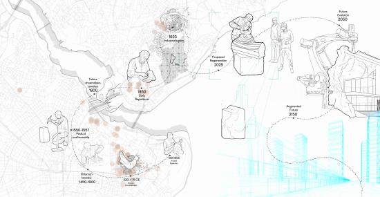 The potential of this project lies in the strong connection between craftsmen (left behind as a result of the industrial revolution and mass production) and integration of the new opportunities from contemporary technologies. This expands the timeline of the project beyond the history and allows it to continue as a future design tool to preserve the traditions. The new explorations and geometries that can come from human work and machine can give birth to a sculptural language as a reflection of skill, culture and innovation.
