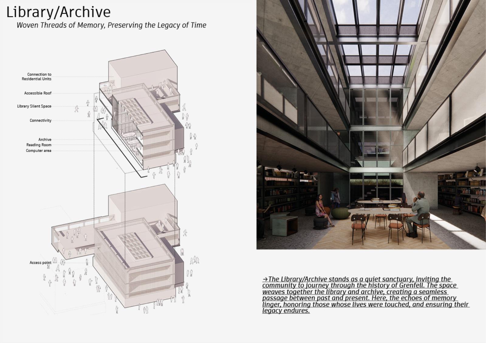 By activating underutilised corridors of the Lancaster West Estate as youth studios and creative arcades, the architecture forges new opportunities for entrepreneurship, social cohesion, and intergenerational exchange.