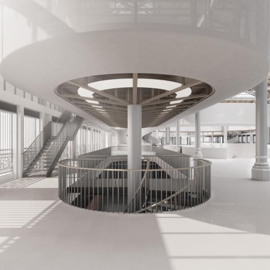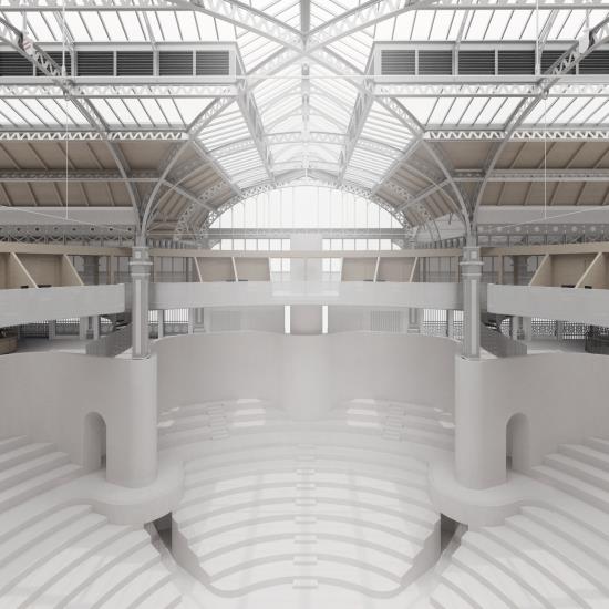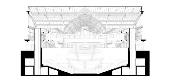 Camp Part 2 Project 2025 Isaac Moody Nottingham Trent University | UK This project reimagines theatre as a catalyst for civic gathering, shared experience, and meaningful connection. It aims to link Manchester’s established city centre with its expanding urban fringe, quietly integrating into the city’s fabric rather than asserting itself as a landmark. The architecture embeds itself within the community, encouraging participation rather than imposing presence.Lower Campfield Market Hall provides a site rich in civic memory and sits ideally between old and new Manchester. Its external form remains largely unchanged, with any adaptations guided by the building’s architectural language and historic value. This preserves the area’s visual identity while reimagining the space for contemporary use.The main intervention sits within the building. A two-storey basement holds support spaces, freeing the ground floor as an open public forum, accessible from all sides and welcoming to all. At its centre, a radial amphitheatre forms around a central stage, blurring the line between audience and performer.Above, lightweight timber and fabric pods, inspired by biplane structures, house technical functions and glow softly. Below, the vaulted brick basement becomes a nightclub, hosting music, dance, and spontaneous encounters. This is not a theatre as landmark, but a vessel for stories, gatherings, and shared experience. Tutor(s) Kenneth Fraser