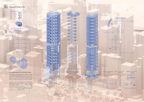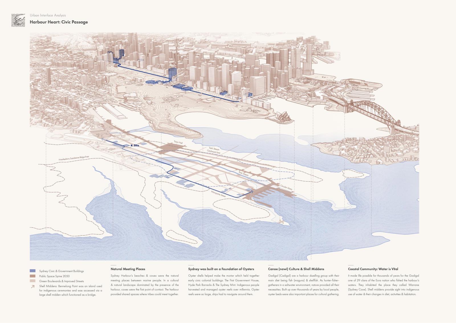 Morals of Mimesis is an adaptive reuse salutogenic justice centre rooted in Sydney Harbour’s rich cultural tapestry and oyster reef ecology. By repurposing the brutalist-style Polding Centre into a justice centre and law library, the project honours the Harbour as a meeting place for the Gadigal and other harbour-dwelling peoples. The design embraces biomimicry through an abstraction of estuarine biodiversity to forge multisensory connections between users and endemic ecologies.