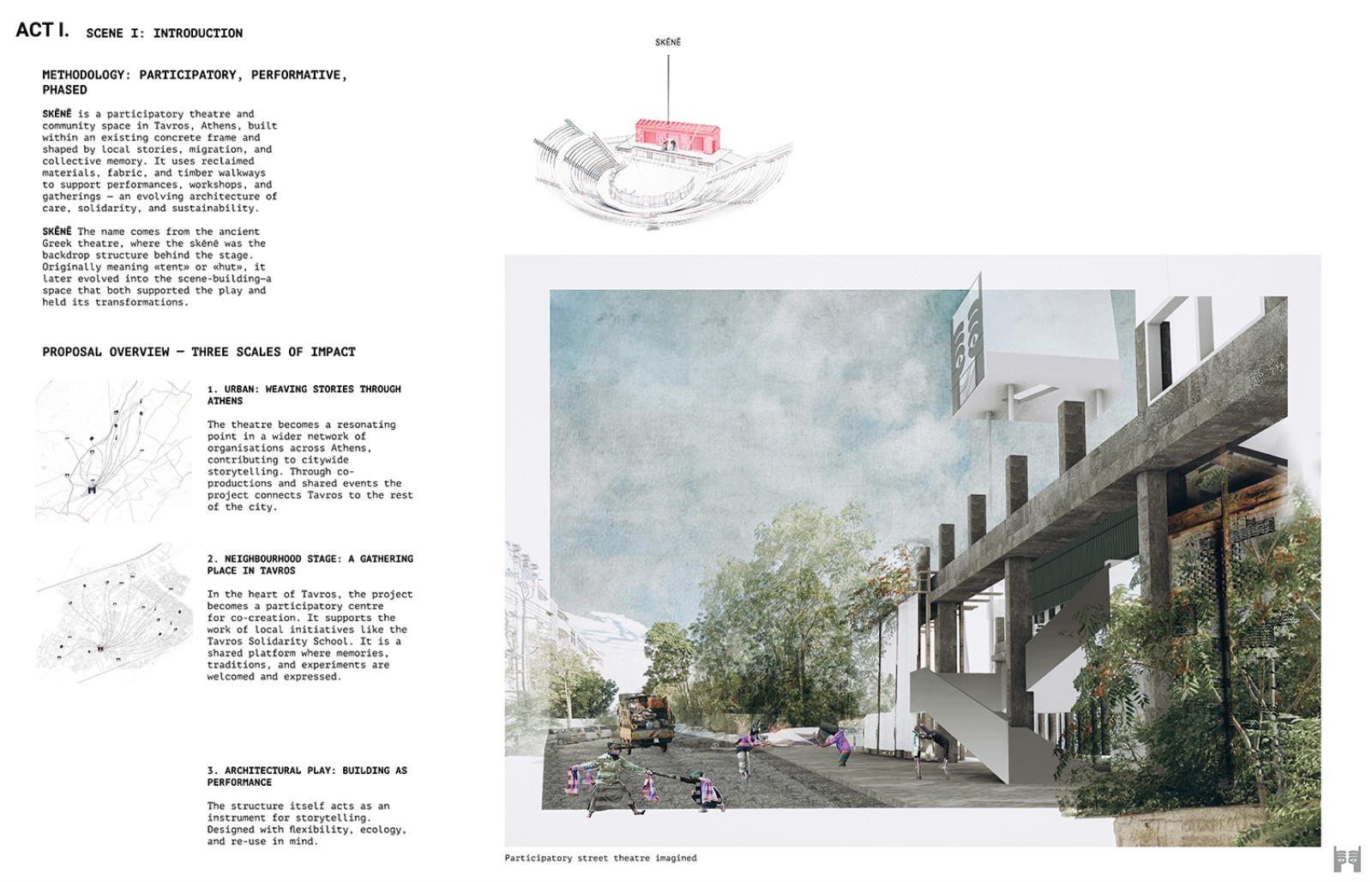 “SKĒNĒ” begins with a ruin - an abandoned concrete frame in Tavros, Athens - and reclaims it as a participatory theatre and community space shaped by stories of displacement, resistance, and care.