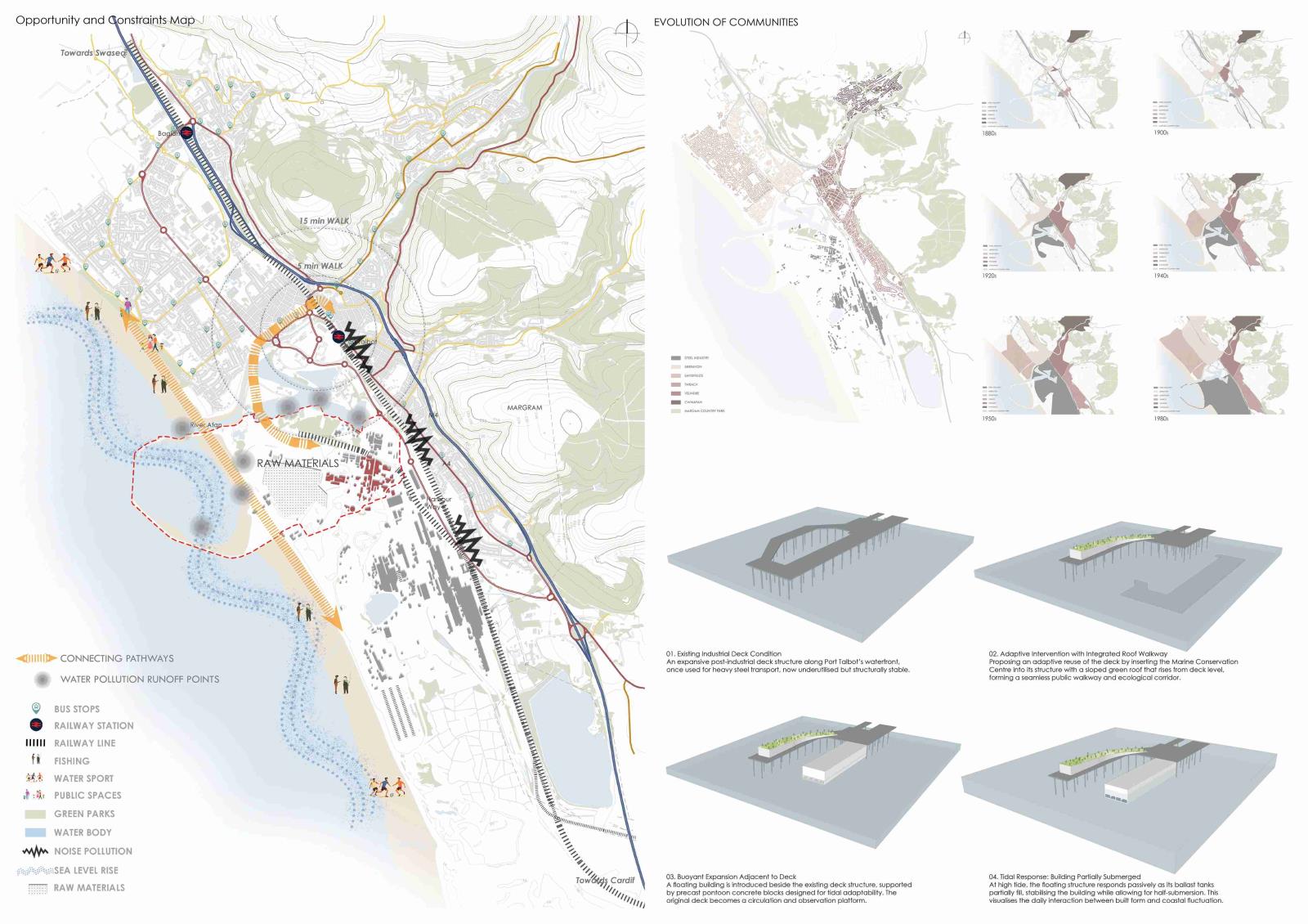 Reimagining Port Talbot: A Sustainable Coastal Future explores the transformation of a major steel production site in South Wales into a marine conservation-led coastal masterplan. Located at the edge of a heavily industrialised landscape, the project responds to ecological degradation, rising sea levels, and the urgent need for post-carbon futures in coastal cities.