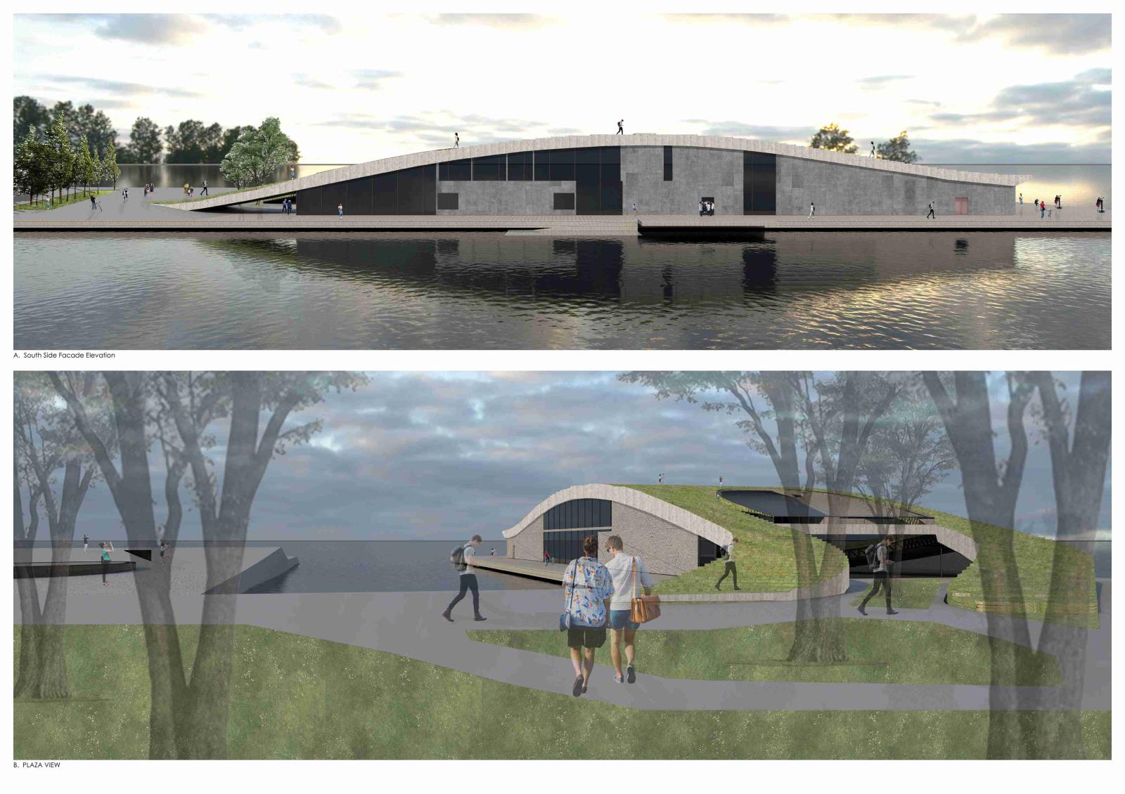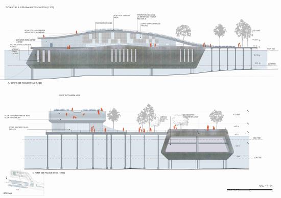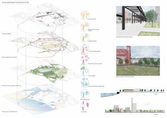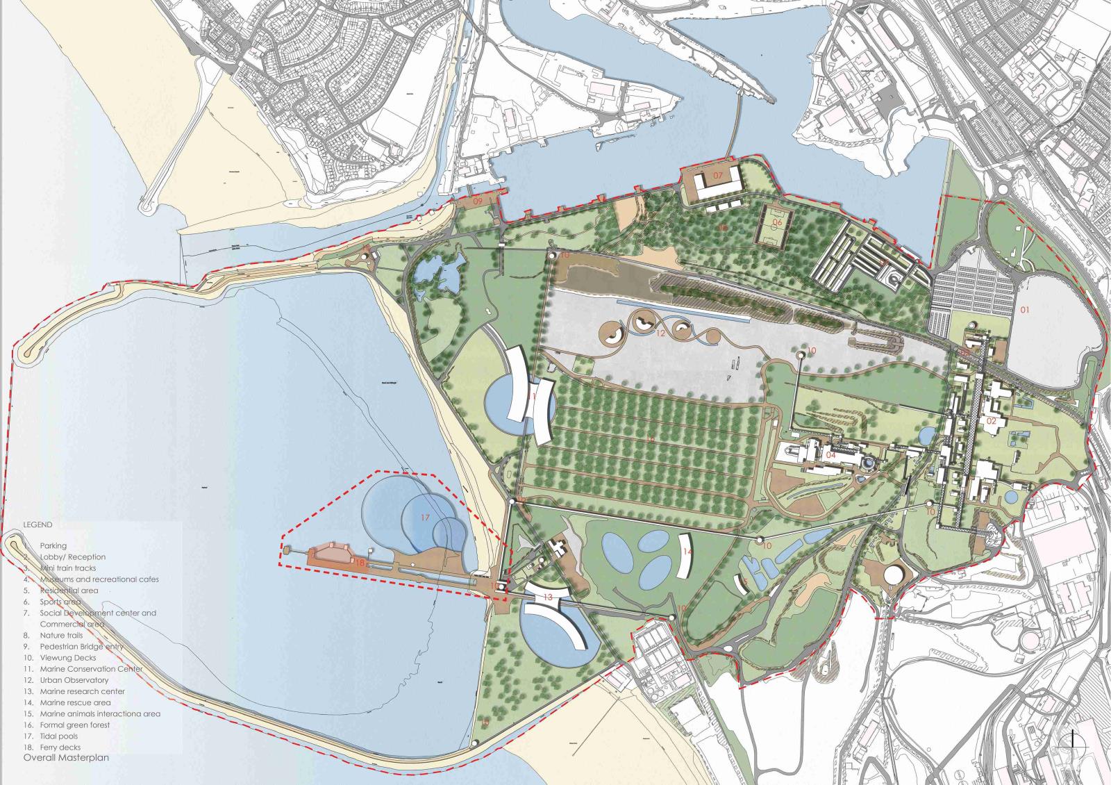 Through the adaptive reuse of industrial structures, the development of community-led green areas, and the incorporation of arboretum planting for soil remediation, the broader masterplan embraces a circular economy approach. The project rethinks how architecture might support social inclusion and ecological recovery by presenting marine conservation as a catalyst for regeneration.